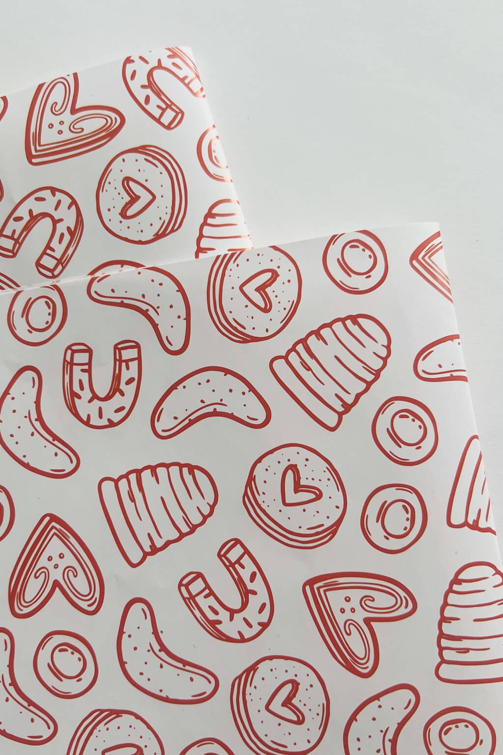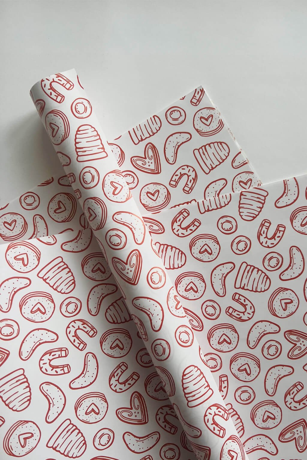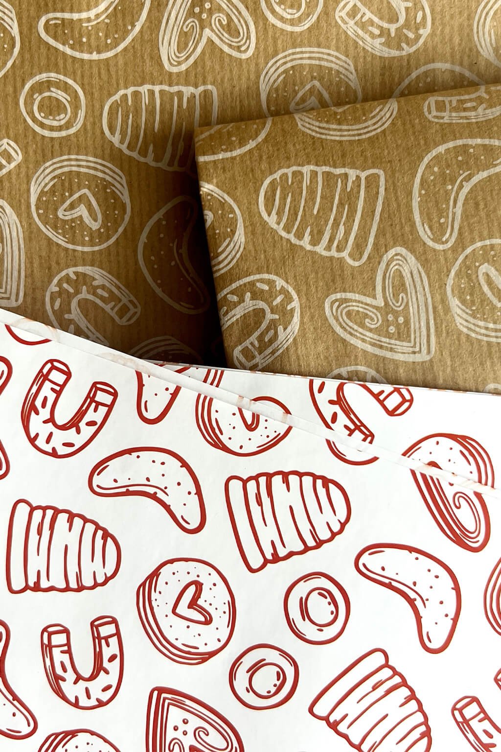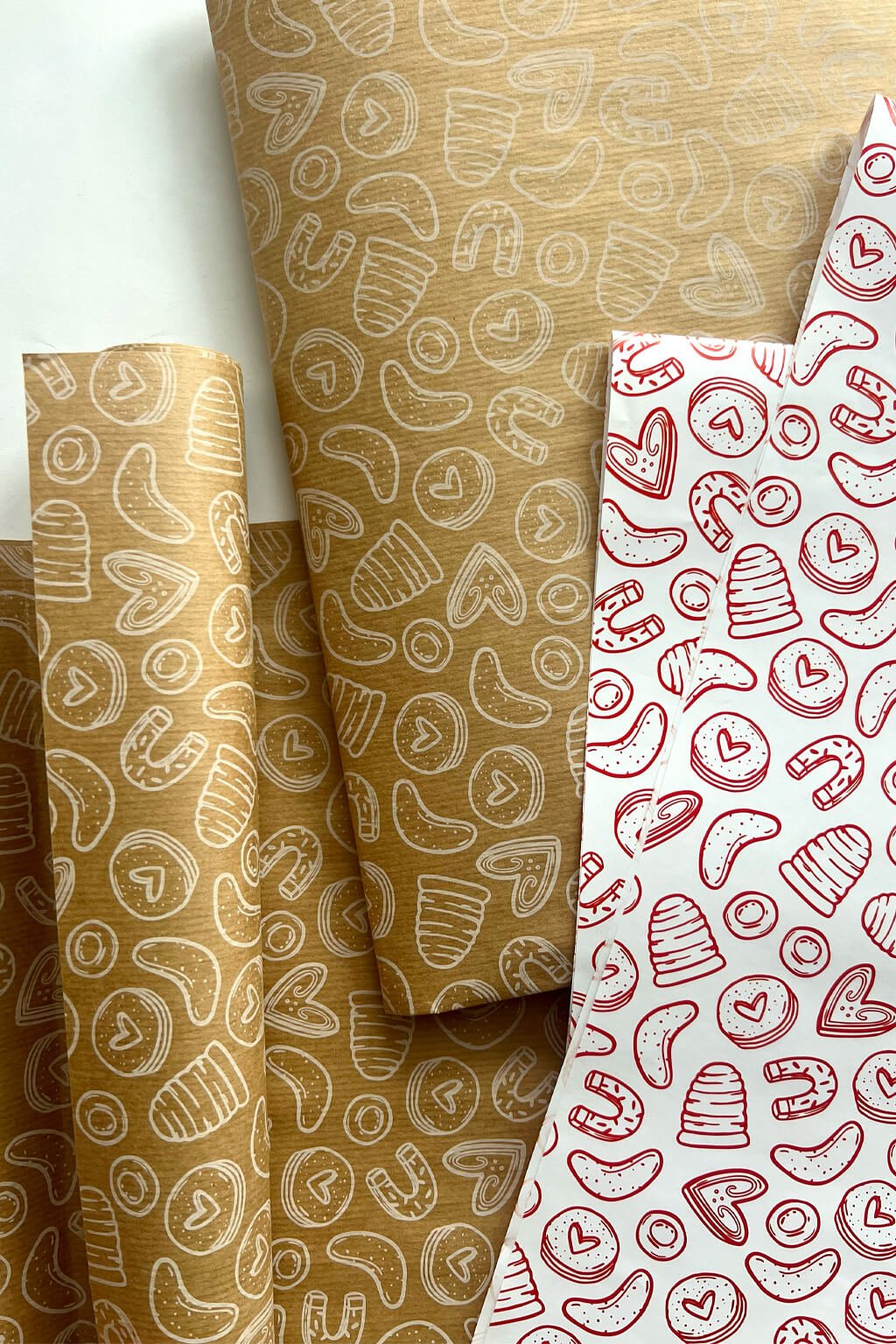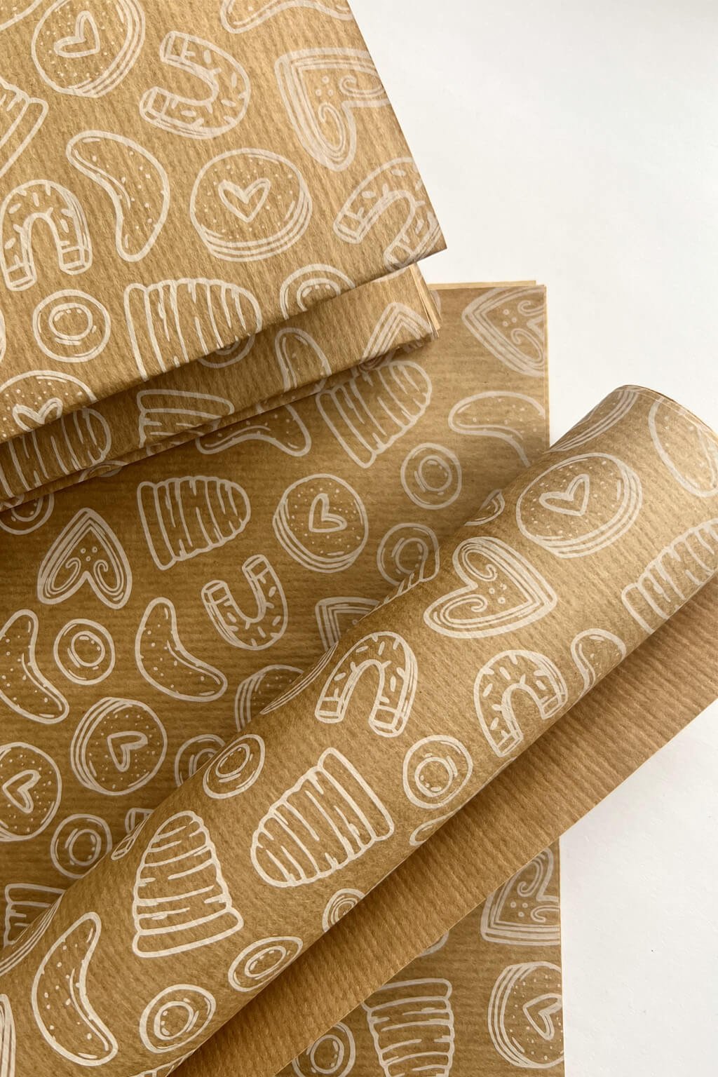 Autorský ilustrovaný baliaci papier s drobným motívom vianočného pečiva.