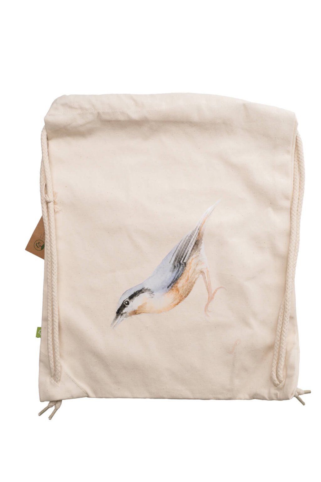 Plátený batoh s originálnym autorským motívom brhlíka osvieži váš outfit o nádych prírody a zároveň pojme všetko potrebné pre váš deň. Batoh je vyrobený zo 100% organickej bavlny a vyznačuje sa vysokou kvalitou a odolnosťou.