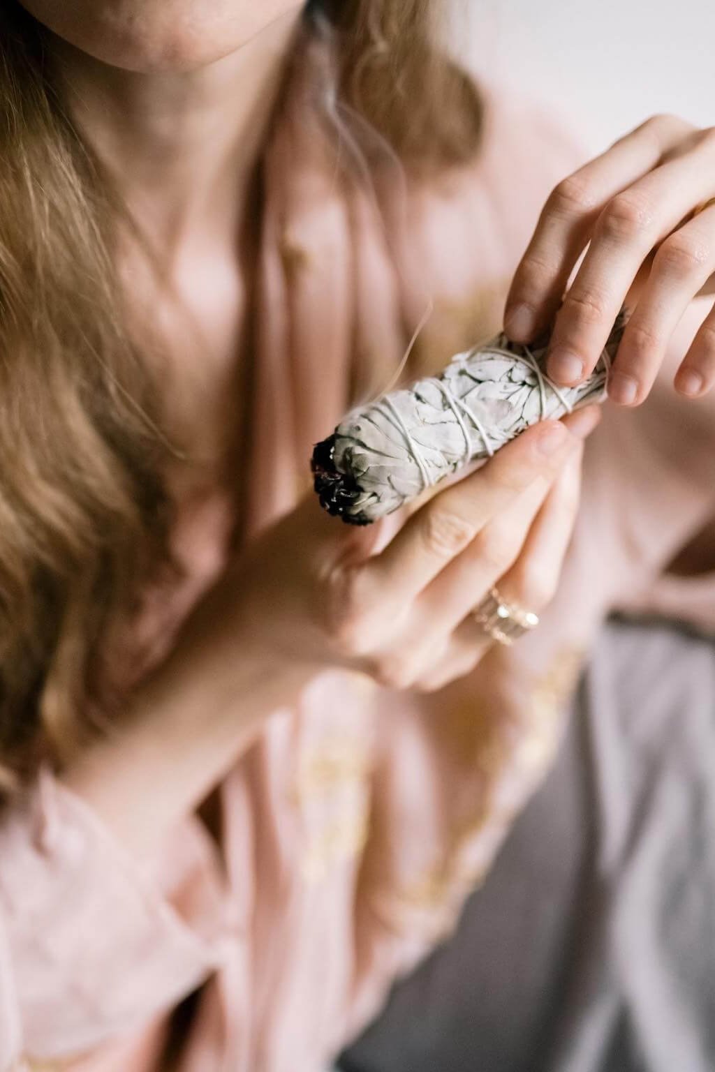 Zapáľte zväzok, sfúknite plameň a nechajte dym naplniť miestnosť. Môžete ho buď držať v ruke a prejsť sa s ním, alebo ho nechať ležať v miske. Ak očisťujete priestor, prejdite sa s dymiacim zväzkom po všetkých miestnostiach. Po dokončení rituálu zväzok zapichnite do piesku alebo himalájskej soli, alebo odstrihnite dymiaci koniec.