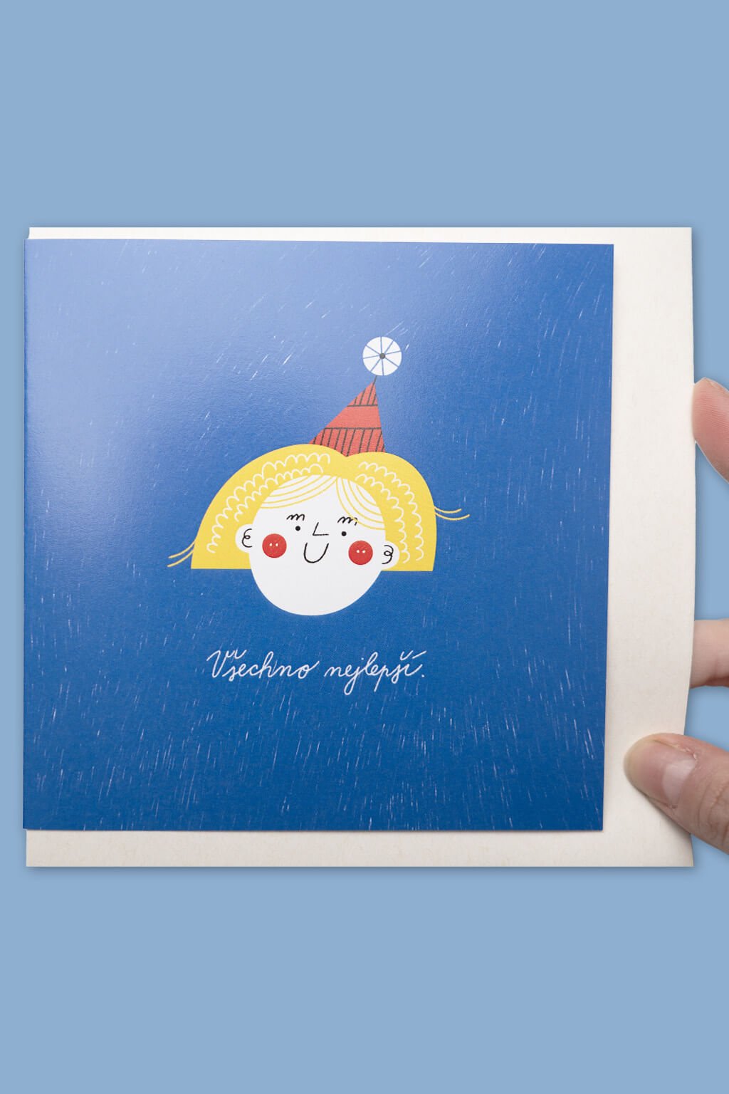 Potešte svojich blízkych veselým prianím s autorským obrázkom šťastného usmievavého dievčatka s čiapkou.
