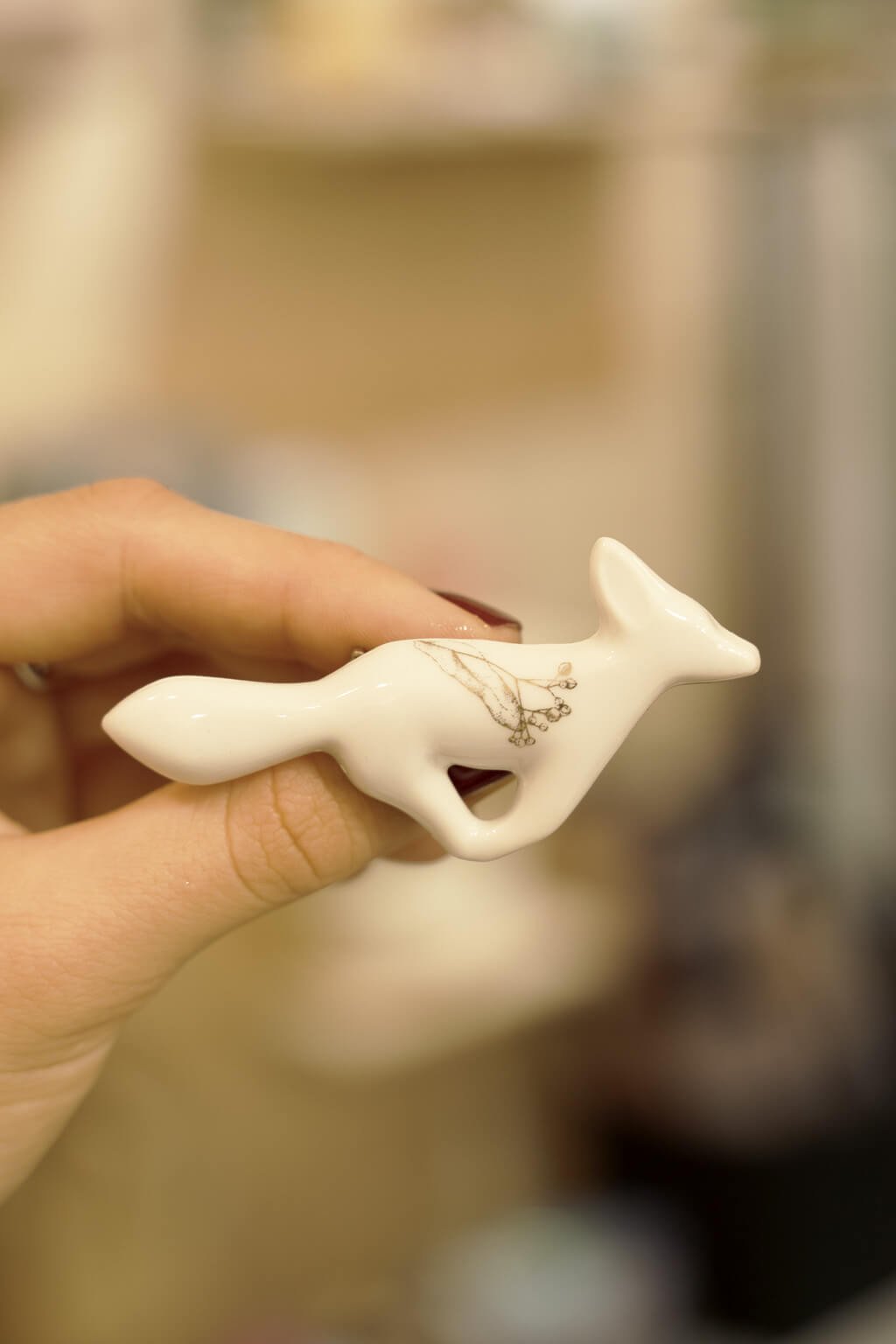 Porcelánová brošňa v tvare líšky od Rokyta porcelán.