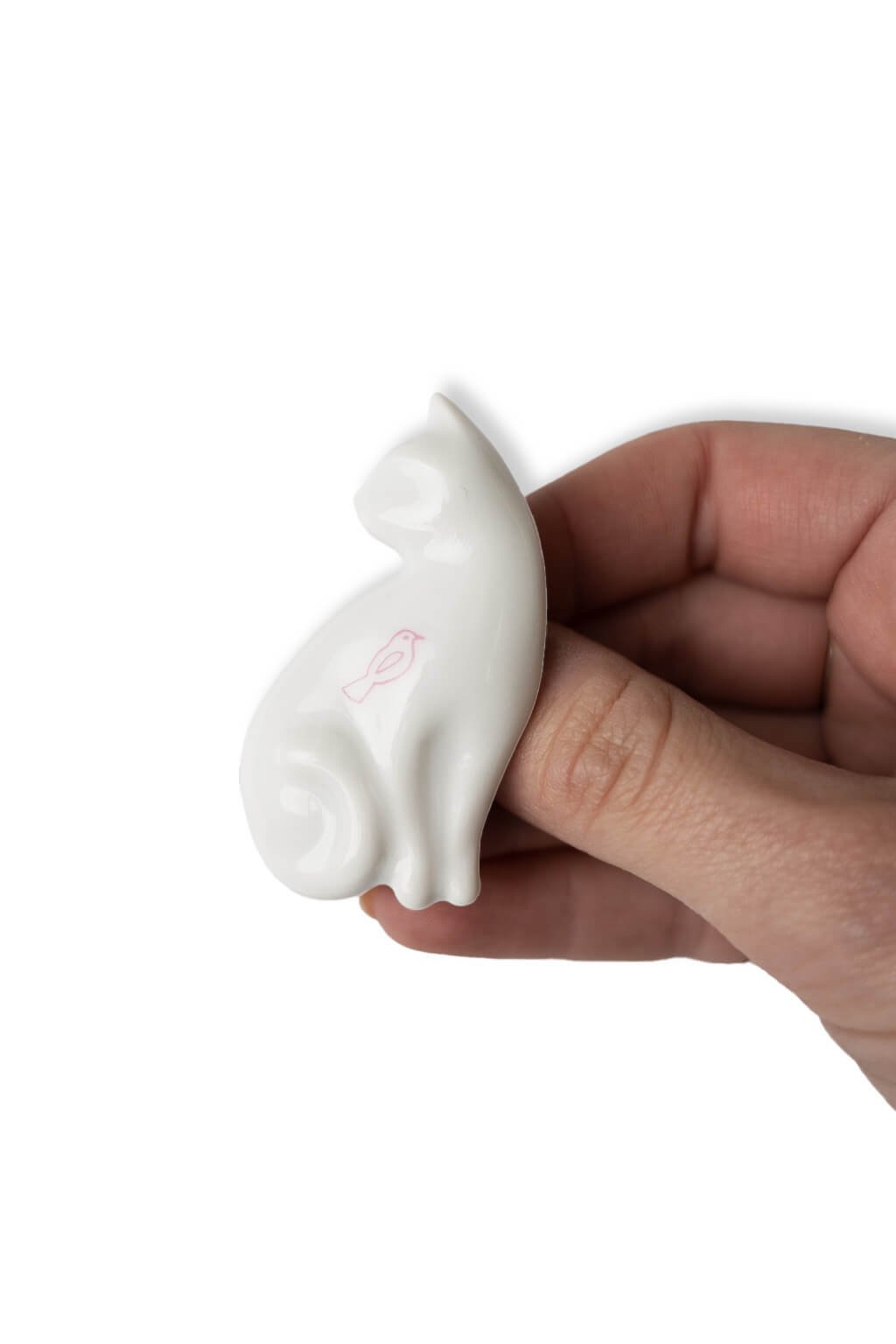 Porcelánová brošňa v tvare mačky od Rokyta porcelán.