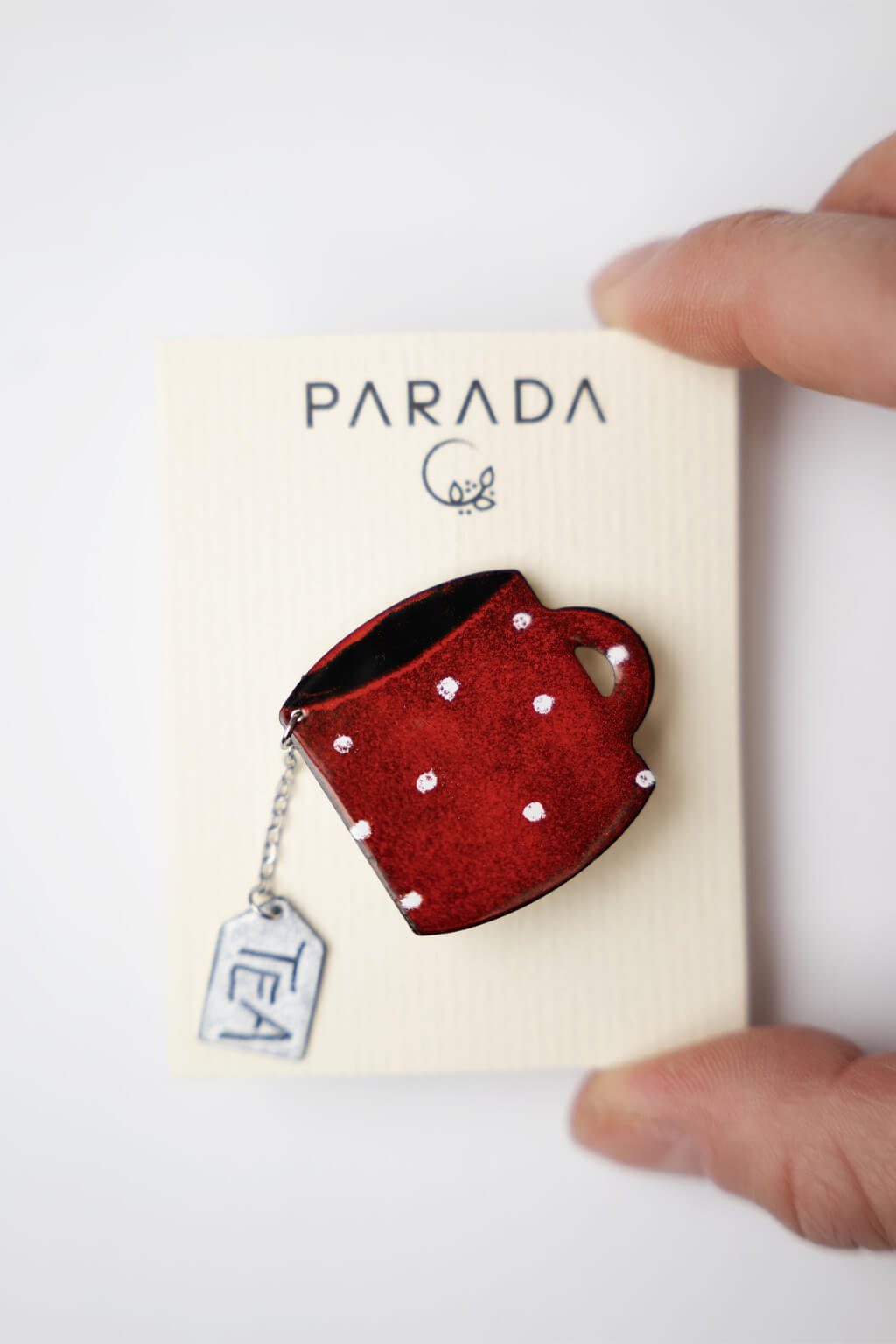 Táto roztomilá brošňa s motívom červeného šálku čaju je skvelým nápadom na originálny darček.