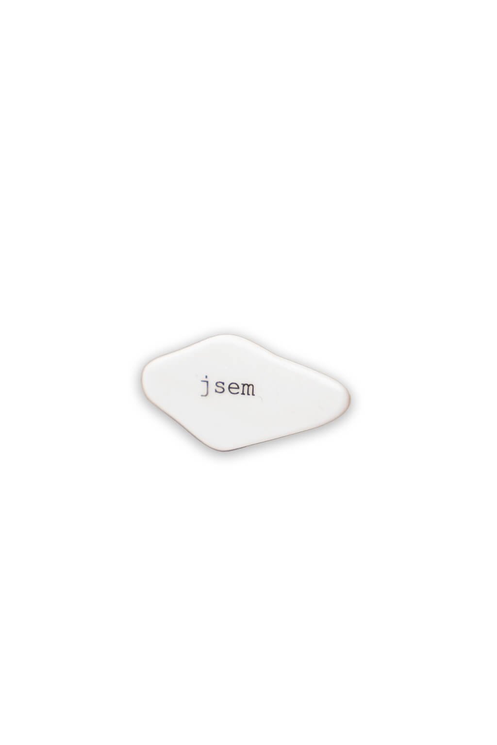 Jemná porcelánová brošňa, zdobená textom SOM, dodá vášmu outfitu nádych luxusu a originality.