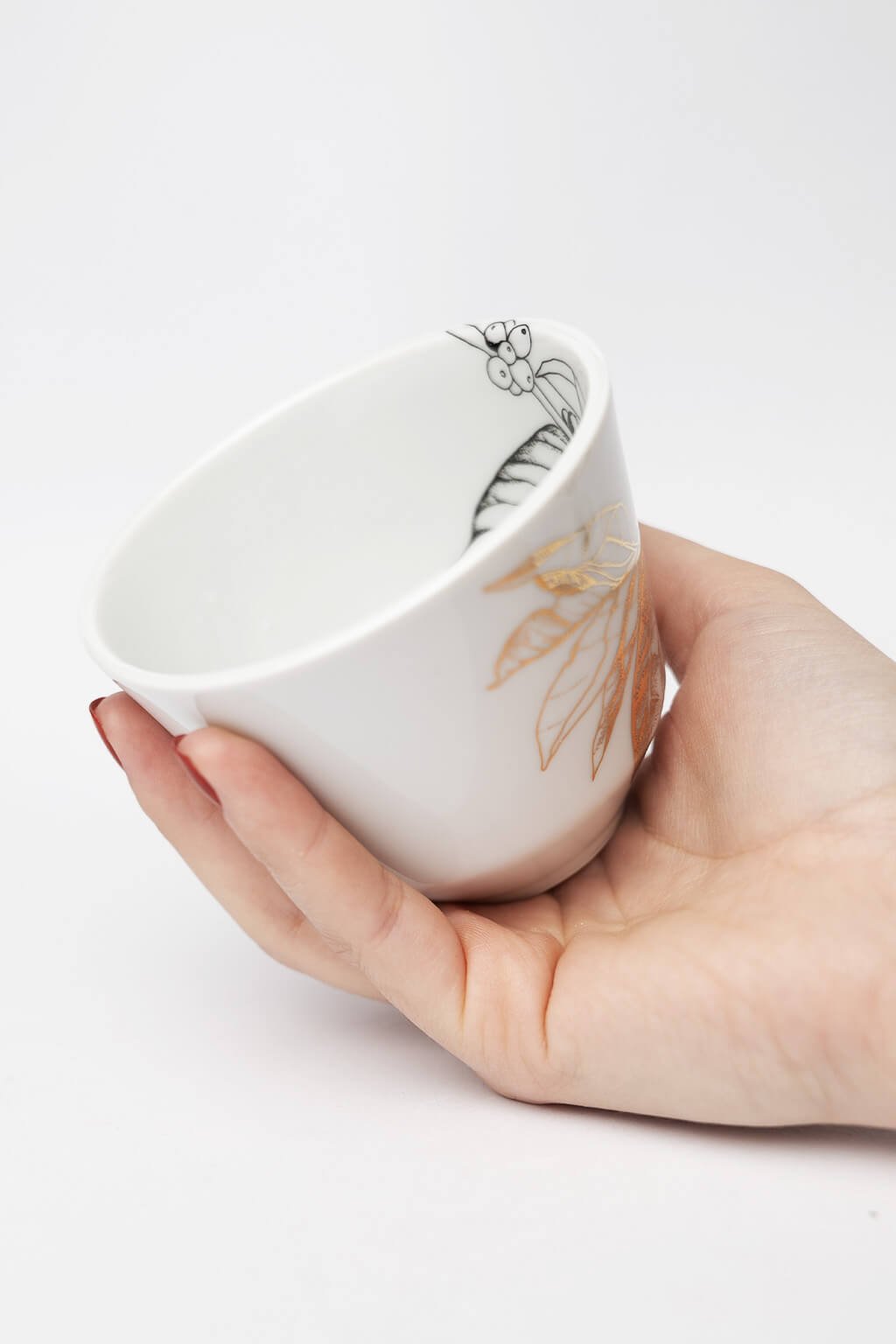 Porcelánový kalíšok na cappuccino s motívom jarabín v čiernej a zlatej farbe je štýlovým doplnkom pre milovníkov výnimočného dizajnu. Darček, ktorý ocení každý, kto si potrpí na kvalitu a originalitu.