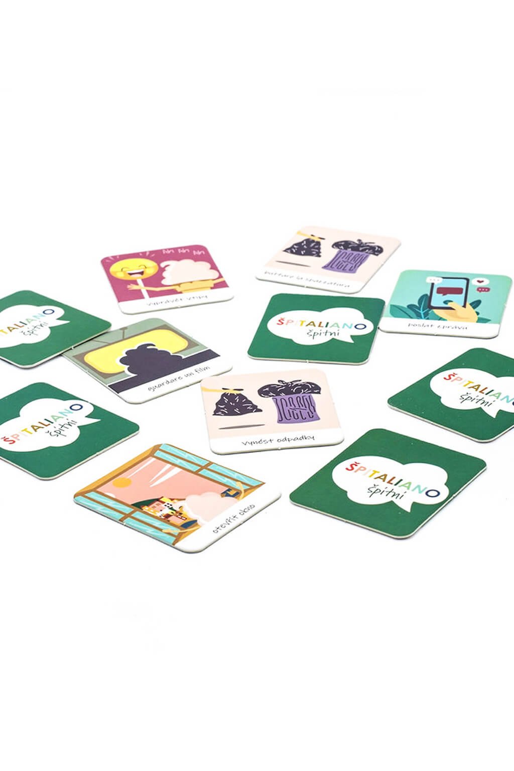 Vďaka pexesu sa teda naučíte talianske výrazy správne čítať, zistíte, čo znamenajú a vďaka tabuľke sa ich naučíte hovoriť rovno vo všetkých osobách! Obrázky vám pomôžu s lepšou asociáciou výrazu a deja, takže vám taliančina bude skákať do hlavy skoro sama.