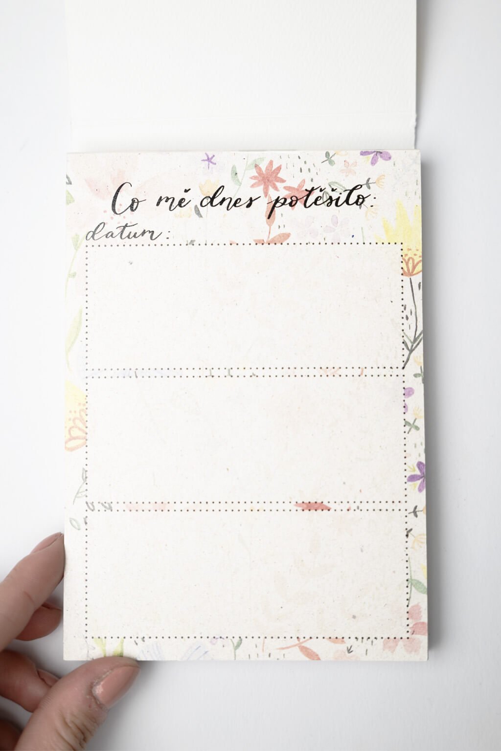 Blok Čo ma dnes potešilo vám pomôže zamerať sa na to dobré vo vašom živote. Každý deň si zapíšete tri veci, ktoré vám urobili radosť, a tým posilníte svoje pozitívne myslenie. Pravidelným zapisovaním si začnete viac všímať drobných radostí a vaša myseľ sa postupne naladí na optimistickejšiu vlnu.💛
