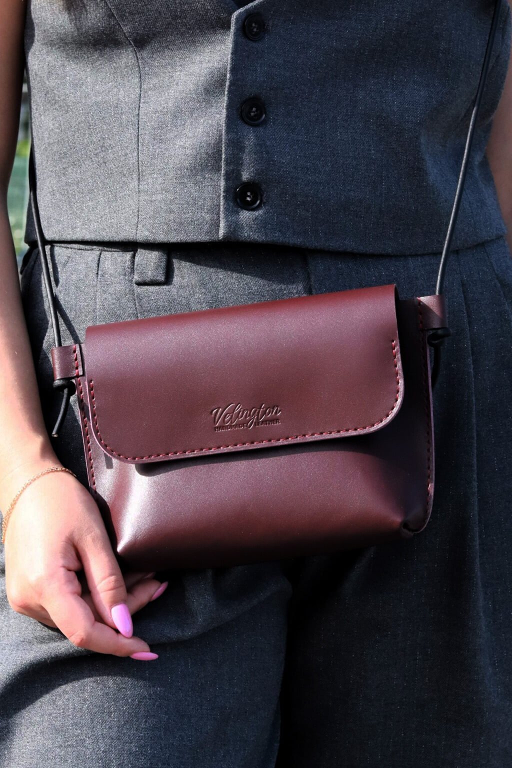 Elegantná kožená kabelka Lilu v bordovej farbe od značky Velington Leather.