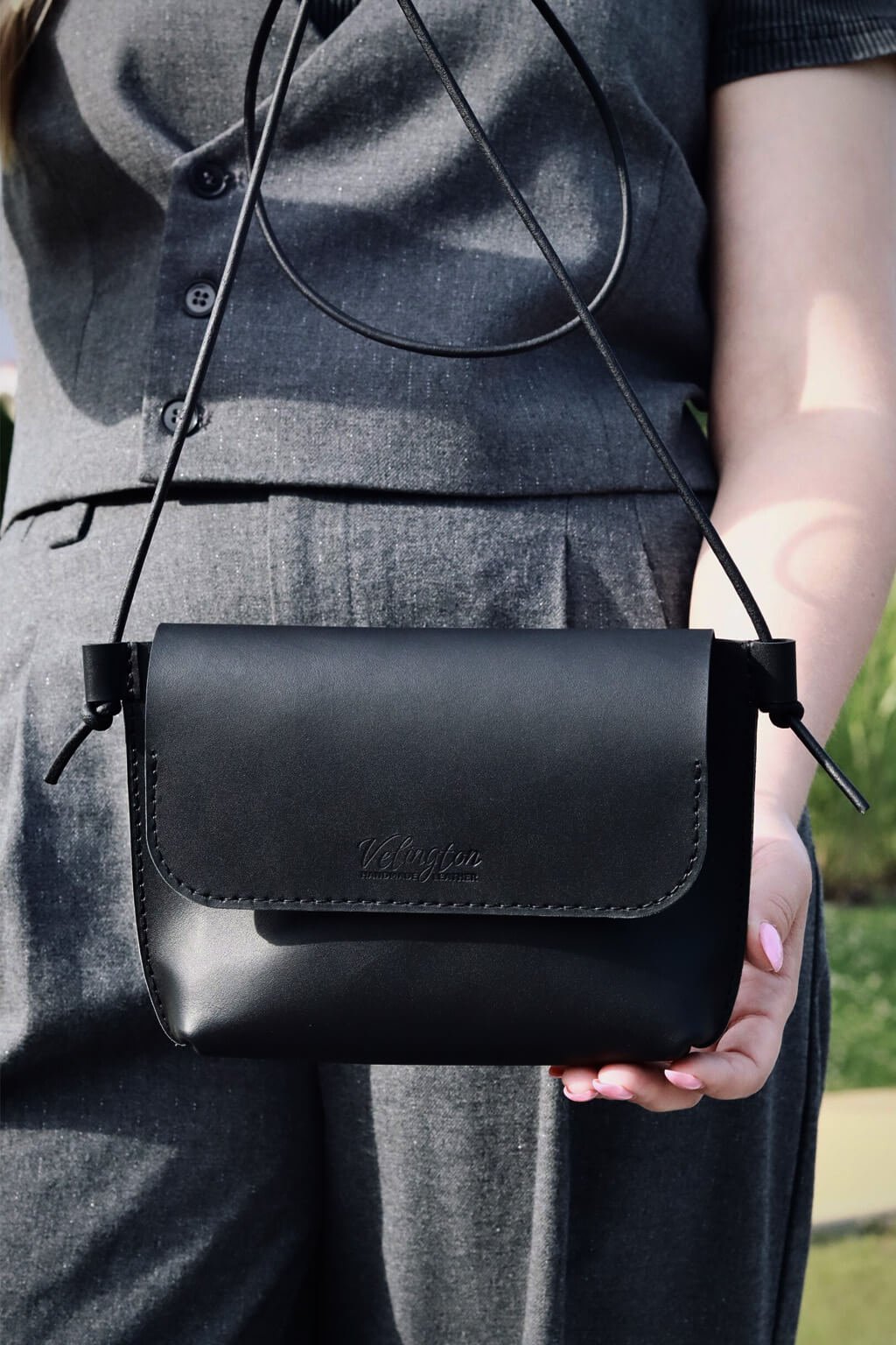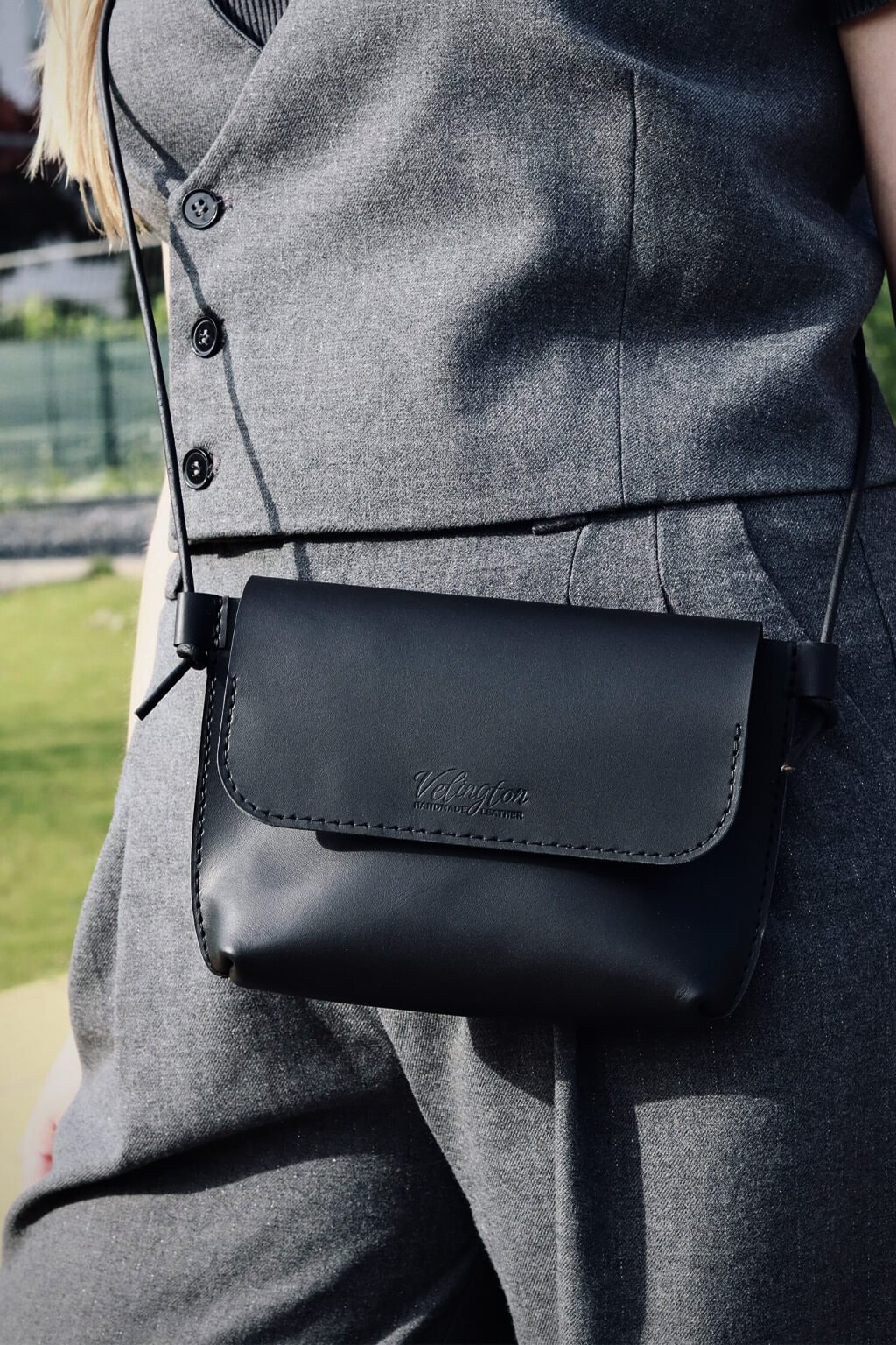 Elegantná kožená kabelka Lilu v klasickej čiernej farbe od značky Velington Leather.