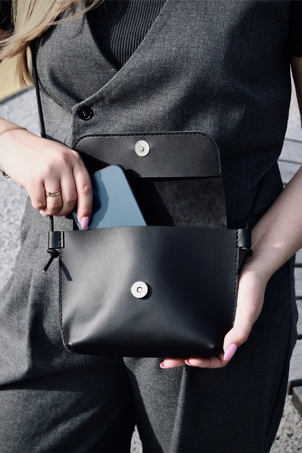 Menšia kožená kabelka ideálna na peňaženku, mobil a kľúče.