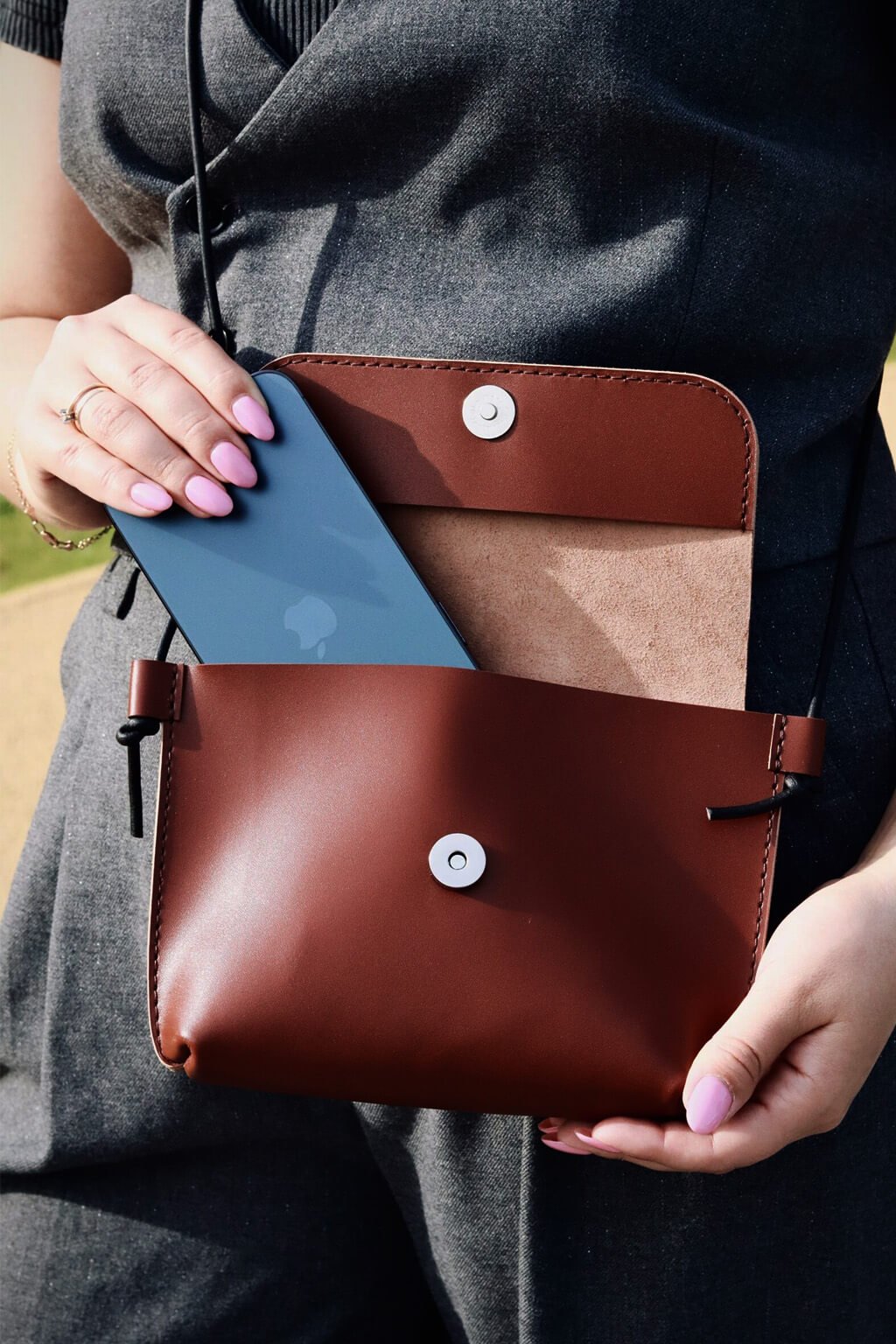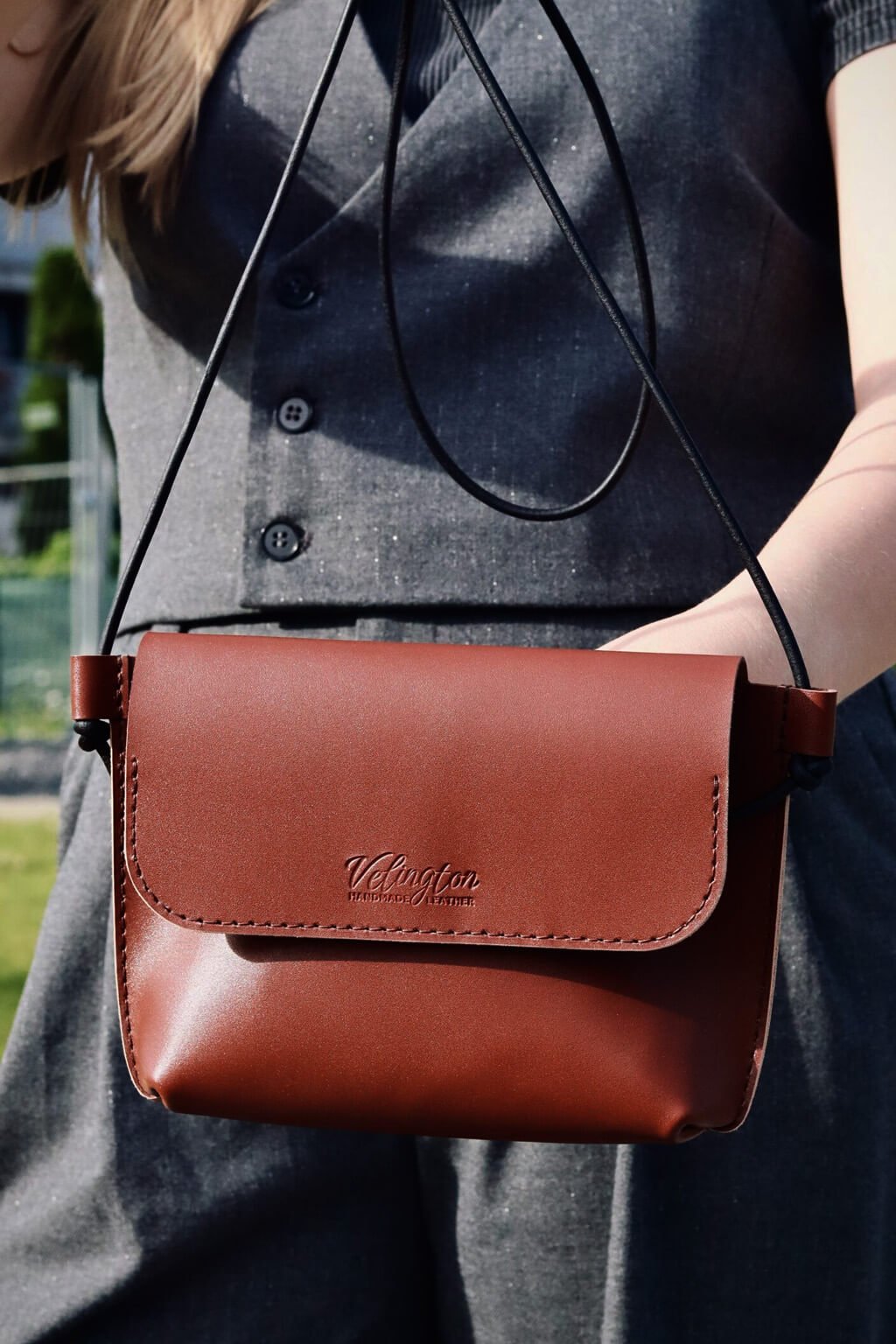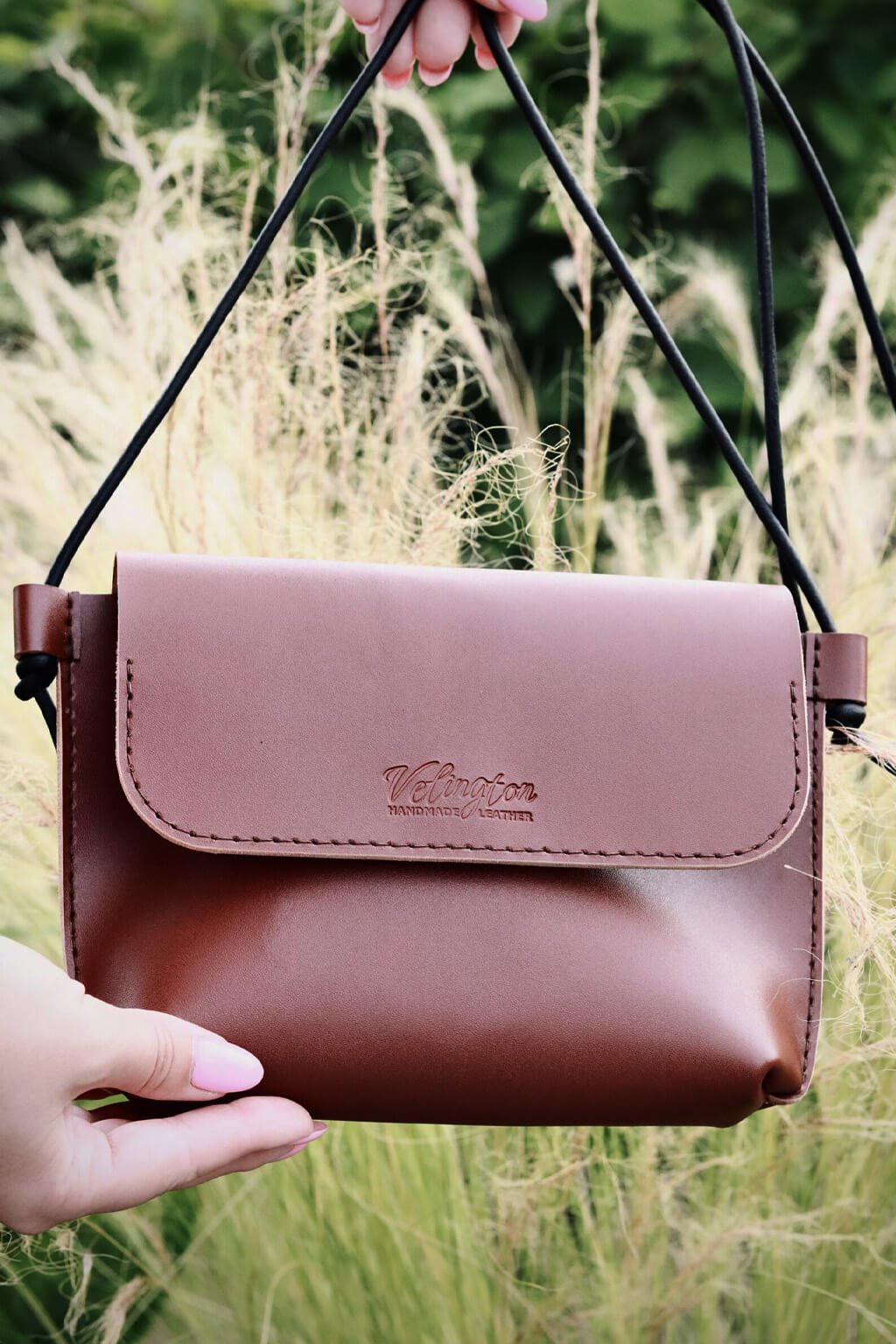 Menšia kožená kabelka ideálna na peňaženku, mobil a kľúče.