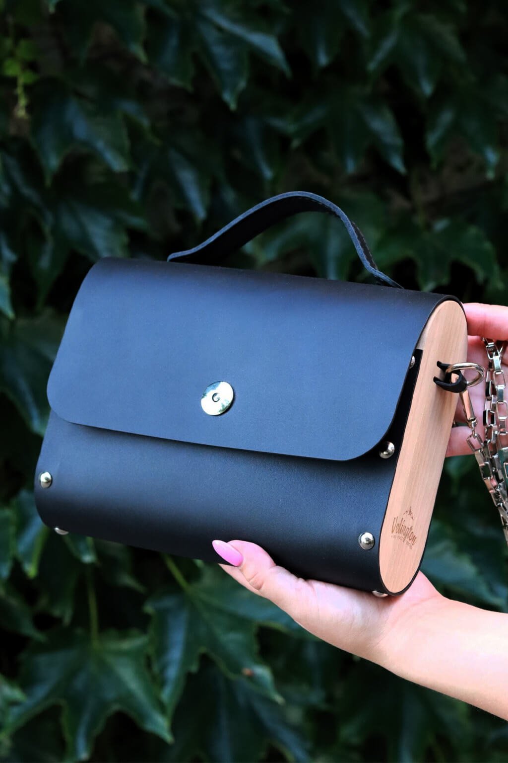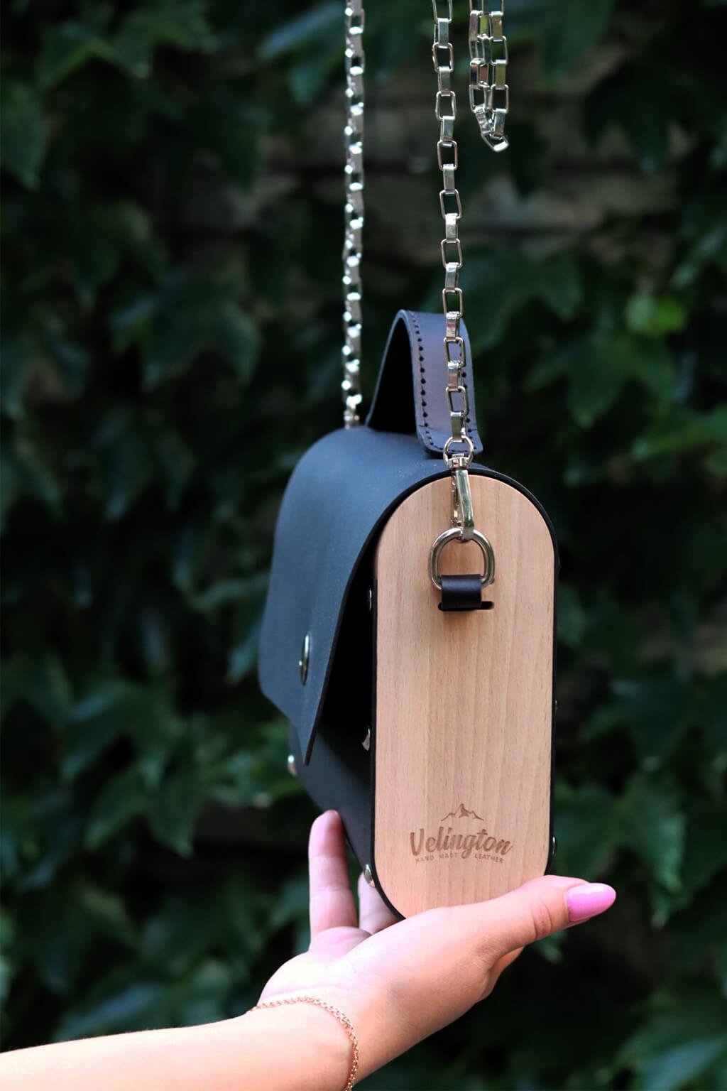 Elegantná kožená taška Wood Bag v čiernej farbe od značky Velington Leather.