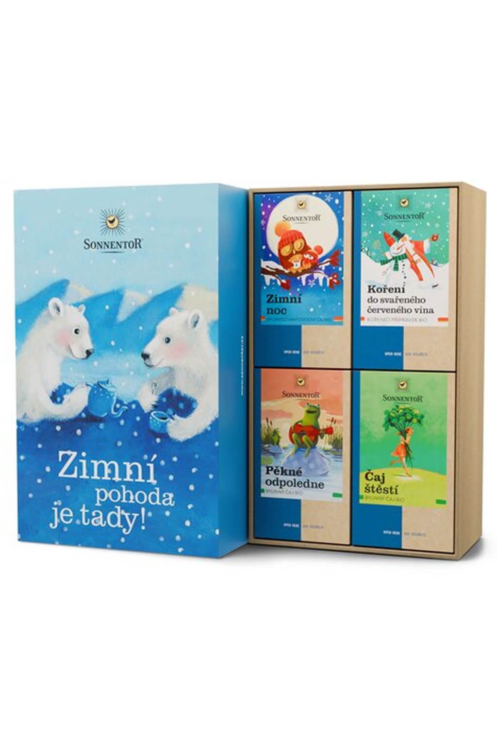 - Zimná noc bio - škorica a klinček v kombinácii s jablkami, šípkami a mandarínkovým aj pomarančovým éterickým olejom robí z tohto čaju nepostrádateľného spoločníka v čase chladných zimných dní.