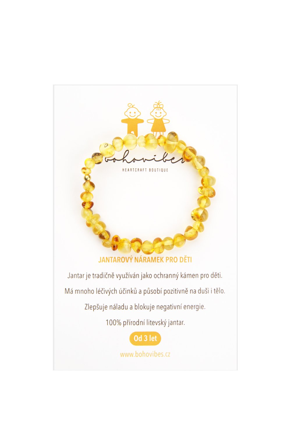 Z dôvodu bezpečnosti odporúčam náramky pre deti staršie ako 3 roky. Menším deťom, napríklad pri prerezávaní zúbkov, nasadzujte náramky iba vtedy, ak sú pod dohľadom dospelej osoby. Pri náhodnom poškodení náramku by mohlo dôjsť k prehltnutiu či vdýchnutiu korálika. Jantár je prírodný materiál a každý korálik je originál. Jednotlivé kusy sa môžu mierne líšiť farbou a tvarom.