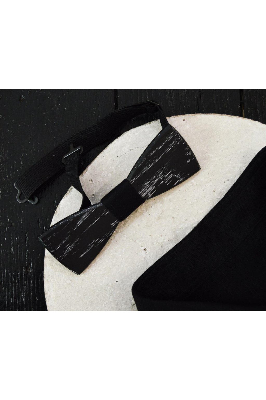 Drevený motýlik - čierny, žíhaný s čiernym viazaním