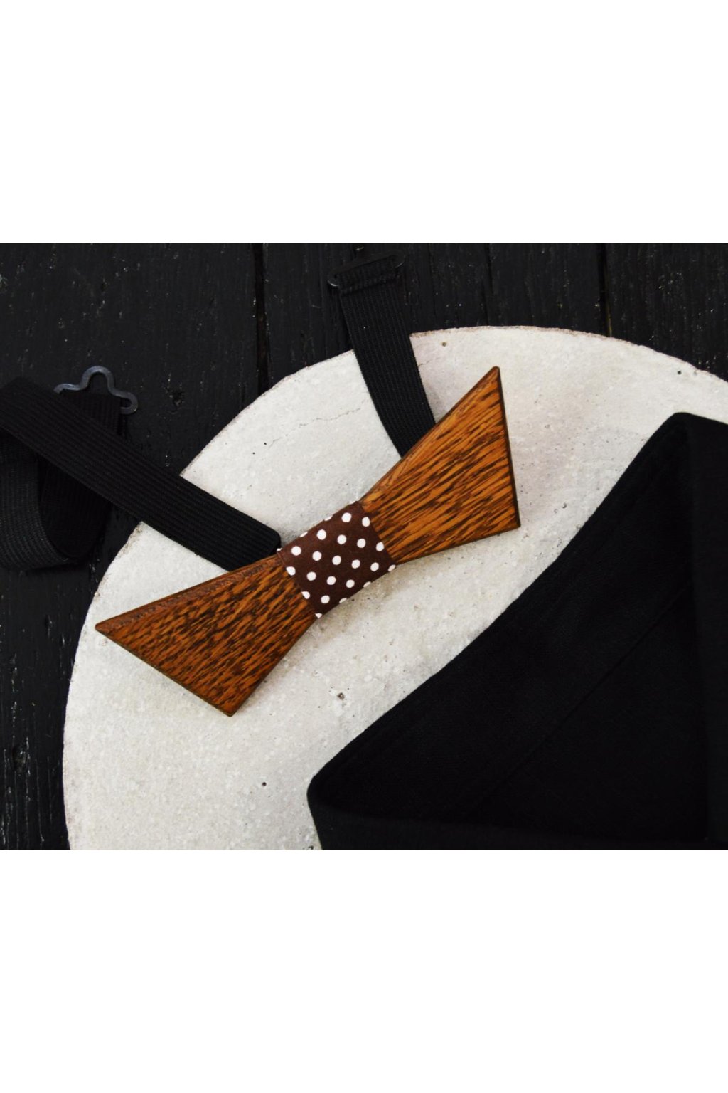 Drevený motýlik - Havana s hnedým viazaním s bielymi bodkami