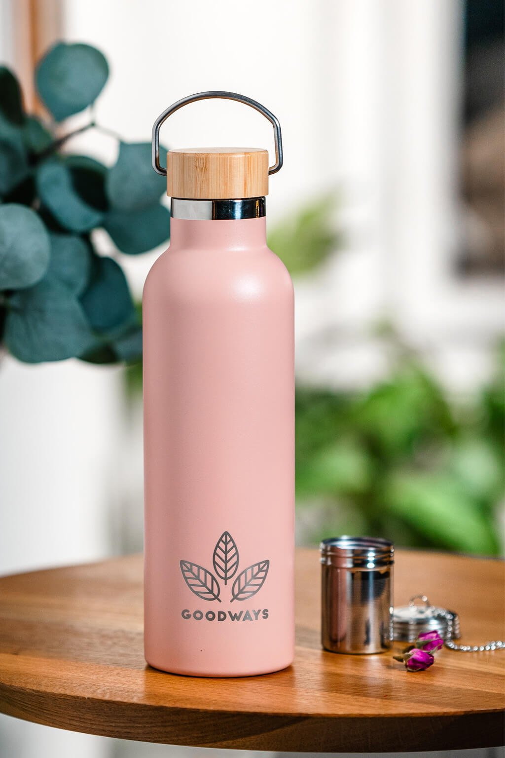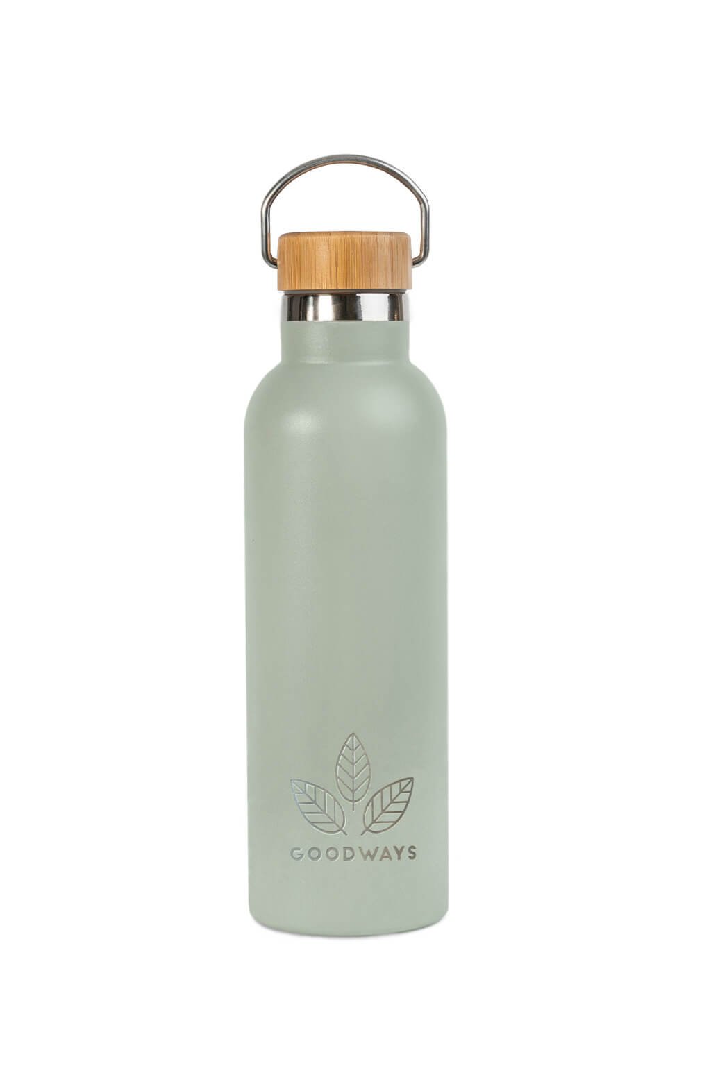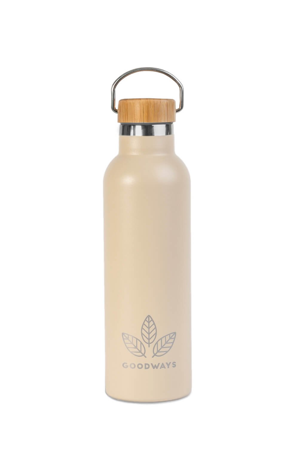 GoodFlask fľaša sa skladá z dvojvrstvovej fľaše z nerezovej ocele a bambusového viečka s kovovým pútkom. Dvojvrstvová stena s vákuovou izoláciou udrží tvoje nápoje teplé alebo studené po celý deň aj v extrémnych teplotách!