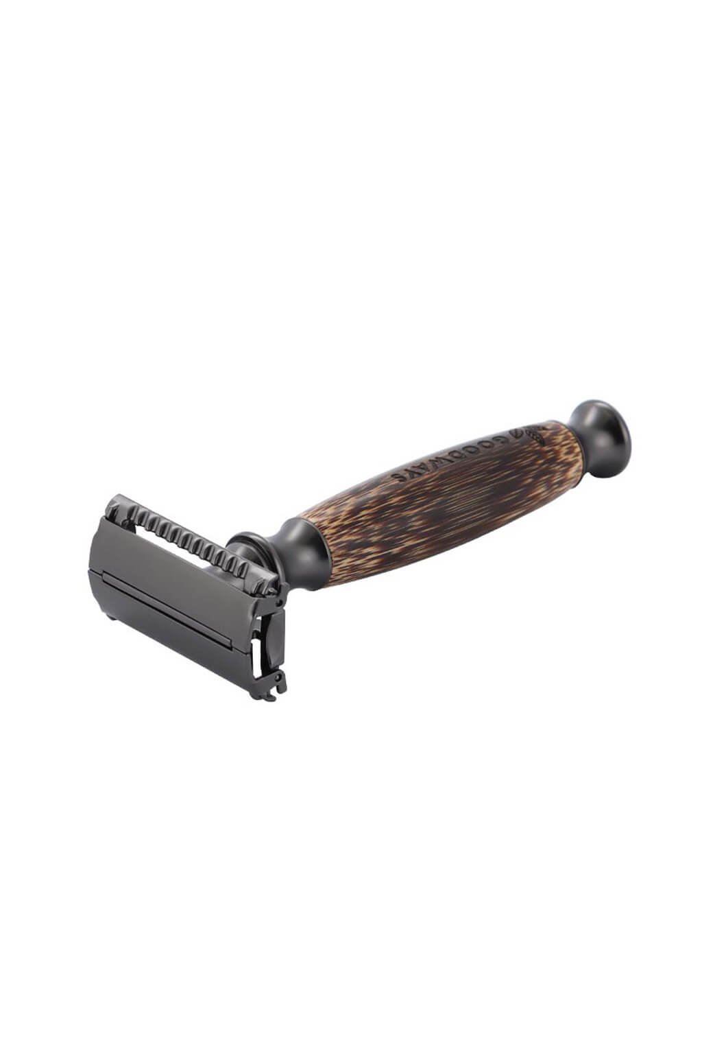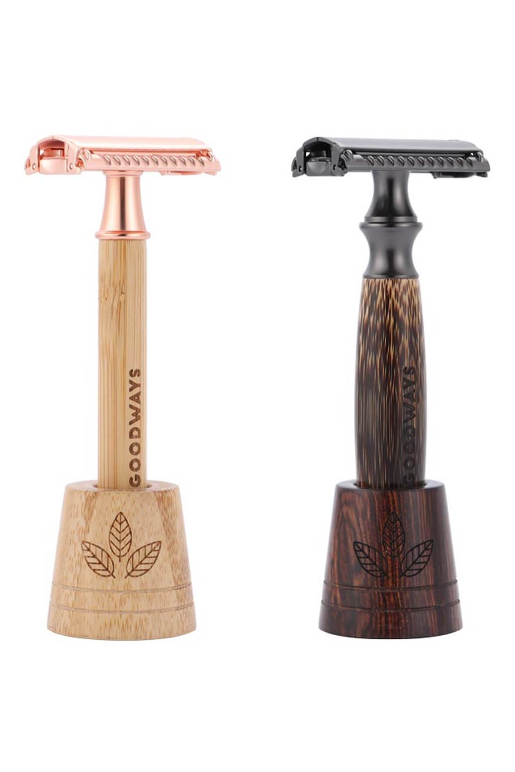 Jedno holítko na celý život? Prečo nie! Vráťme sa ku klasickému holeniu bez plastu. GoodRazor je znovupoužiteľný holiaci strojček na žiletky so stojanom vyrobený z prírodného bambusu, kvalitnej mosadze a zinku. Je štýlovým doplnkom do každej kúpeľne či kozmetickej taštičky. V dvoch prevedeniach, elegantný svetlý Rose Gold sa hodí pre dámy a robustný Dark pre pánov. Holenie s GoodRazorem je šetrné k pokožke, bezpečné a hodí sa na všetky časti tela.