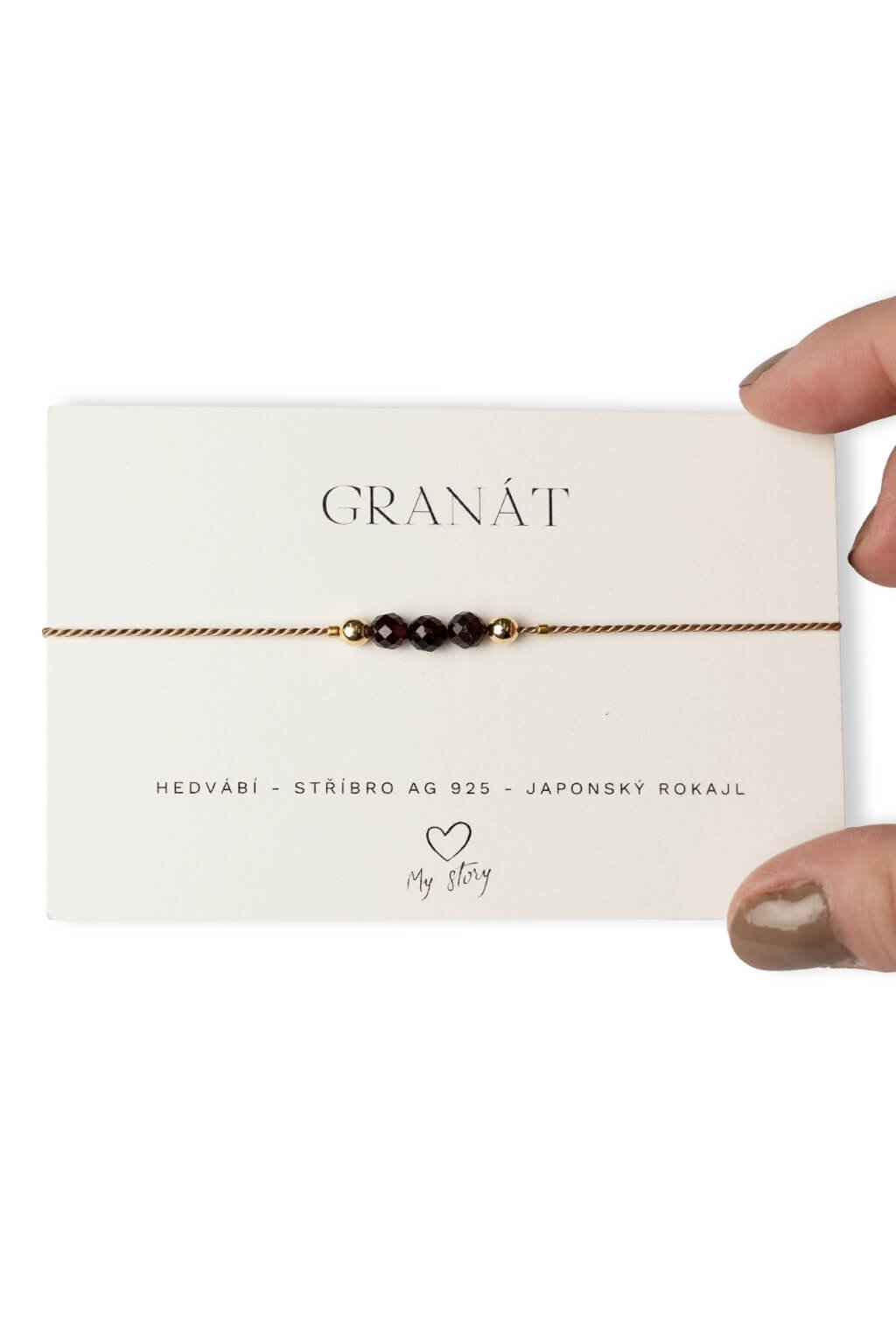 Jemný náramok s granátom od značky My Story Jewelry je vyrobený zo silného kameňa, ktorý energizuje a obnovuje sily. Granát prečisťuje čakry a udržiava ich v harmónii, pričom podľa potreby poskytuje pokoj alebo túžbu. Tento kameň je považovaný za ochranný amulet, ktorý varuje pred nebezpečenstvom a je cenným spoločníkom v krízových situáciách. Posilňuje odvahu, podnecuje aktivitu a prináša nádej aj v ťažkých chvíľach, často priťahuje pomoc, keď je potrebná.