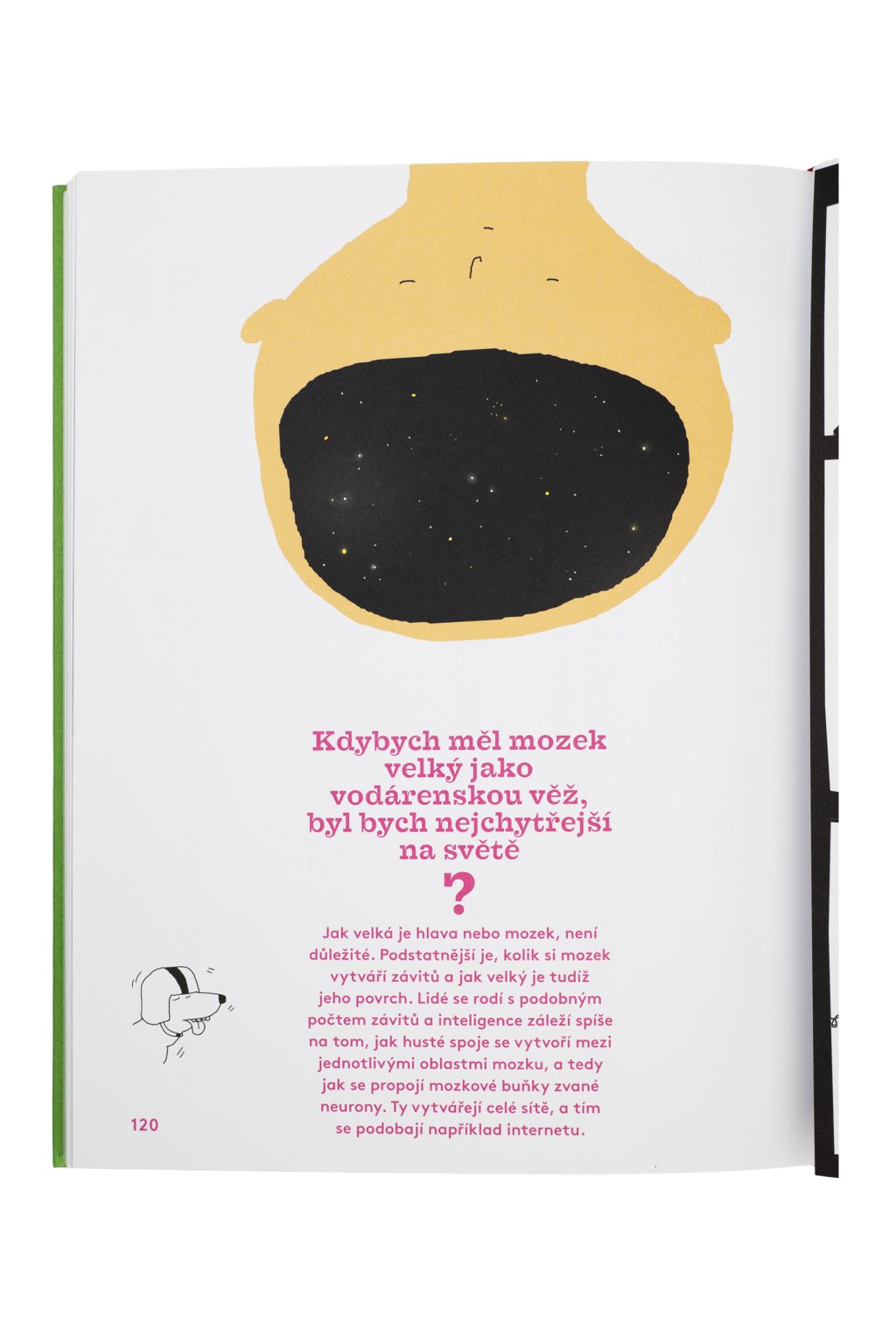 Nevšedná publikácia, prvá česká hlavopédia, určená predovšetkým pre detského čitateľa, ktorej cieľom je originálnou a hravou vizuálnou formou pomôcť pochopiť základné skutočnosti týkajúce sa hlavy, mozgu a jeho fungovania. Výsledkom je vizuálne nápaditá a poetická kniha, spájajúca humor, zábavu aj poučenie, v ktorej na zvedavé detské otázky odpovedajú nielen neurológ, boxer či detektív.