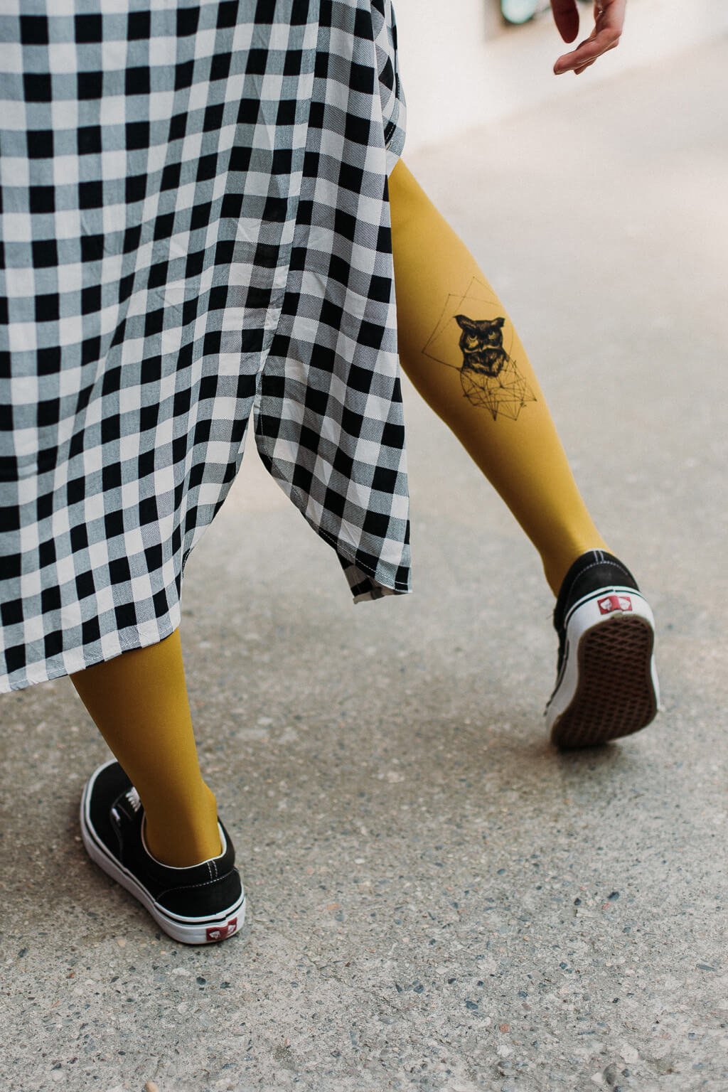 Pančuchy majú hrúbku 40 DEN (stredná sila), čo znamená, že sú nepriehľadné, pohodlné a disponujú zosilnenými špičkami, aby vám poskytovali dlhodobý komfort. Dizajny motívov vytvárajú tvorcovia z muhehe a ďalší českí ilustrátori. Každý kus prechádza starostlivým procesom od samotného nápadu, cez skicu a finálnu ilustráciu až po ručnú tlač v Českej republike. S každým zakúpeným kúskom získate jedinečný originál.