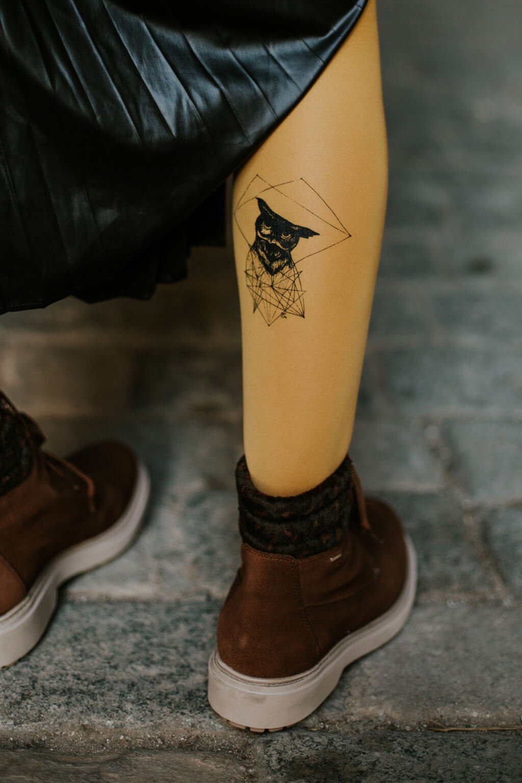 Pančuchy majú hrúbku 40 DEN (stredná sila), čo znamená, že sú nepriehľadné, pohodlné a disponujú zosilnenými špičkami, aby vám poskytovali dlhodobý komfort. Dizajny motívov vytvárajú tvorcovia z muhehe a ďalší českí ilustrátori. Každý kus prechádza starostlivým procesom od samotného nápadu, cez skicu a finálnu ilustráciu až po ručnú tlač v Českej republike.