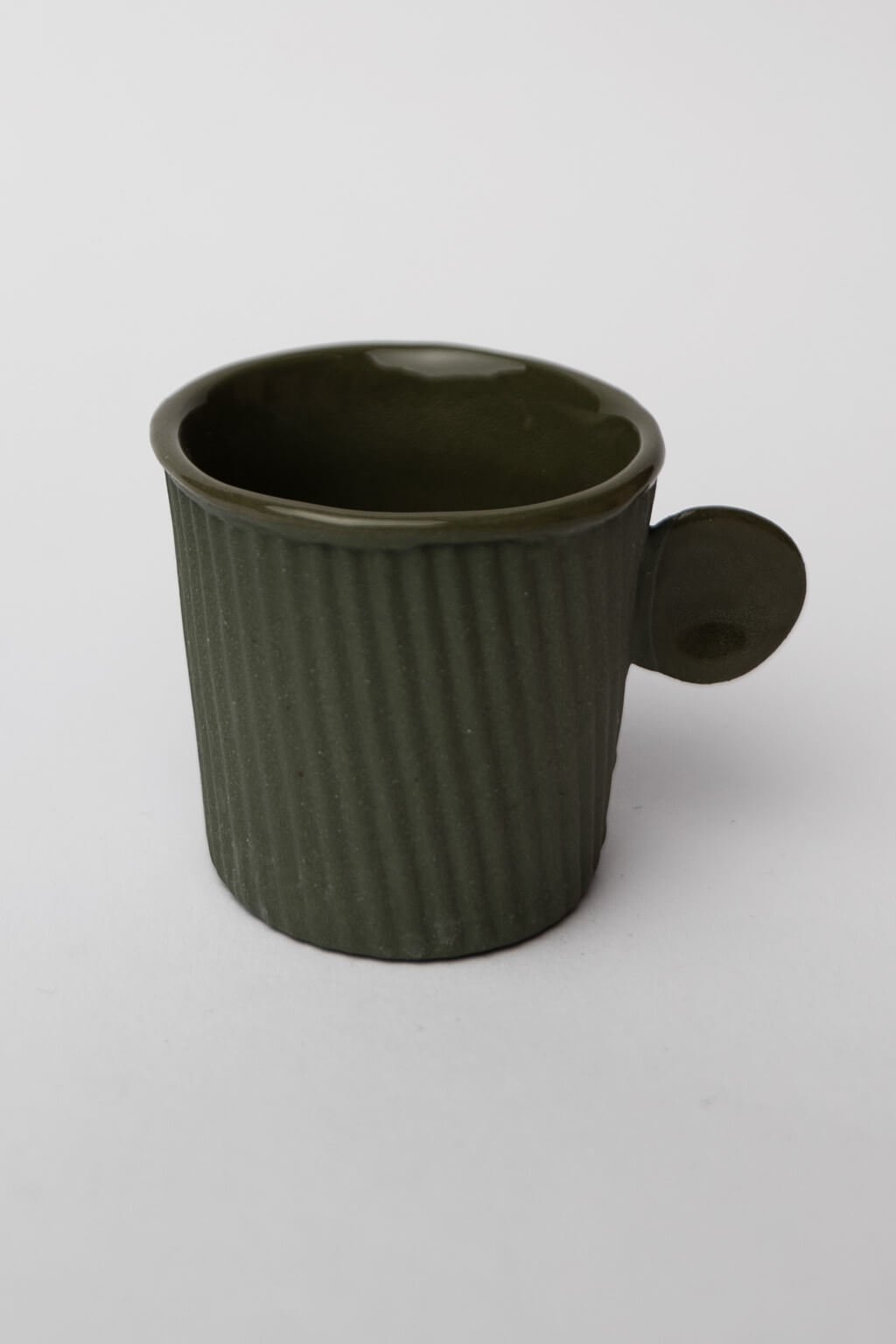 Tento keramický hrnček na espresso v machovo zelenej matnej glazúre s vrúbkovaným povrchom je skvostným doplnkom pre každého milovníka kávy. Lesklý vnútrajšok a lesklé uško pridávajú hrnčeku moderný a elegantný vzhľad, zatiaľ čo unikátne ploché uško nielen skvele vyzerá, ale je aj pohodlné na držanie.