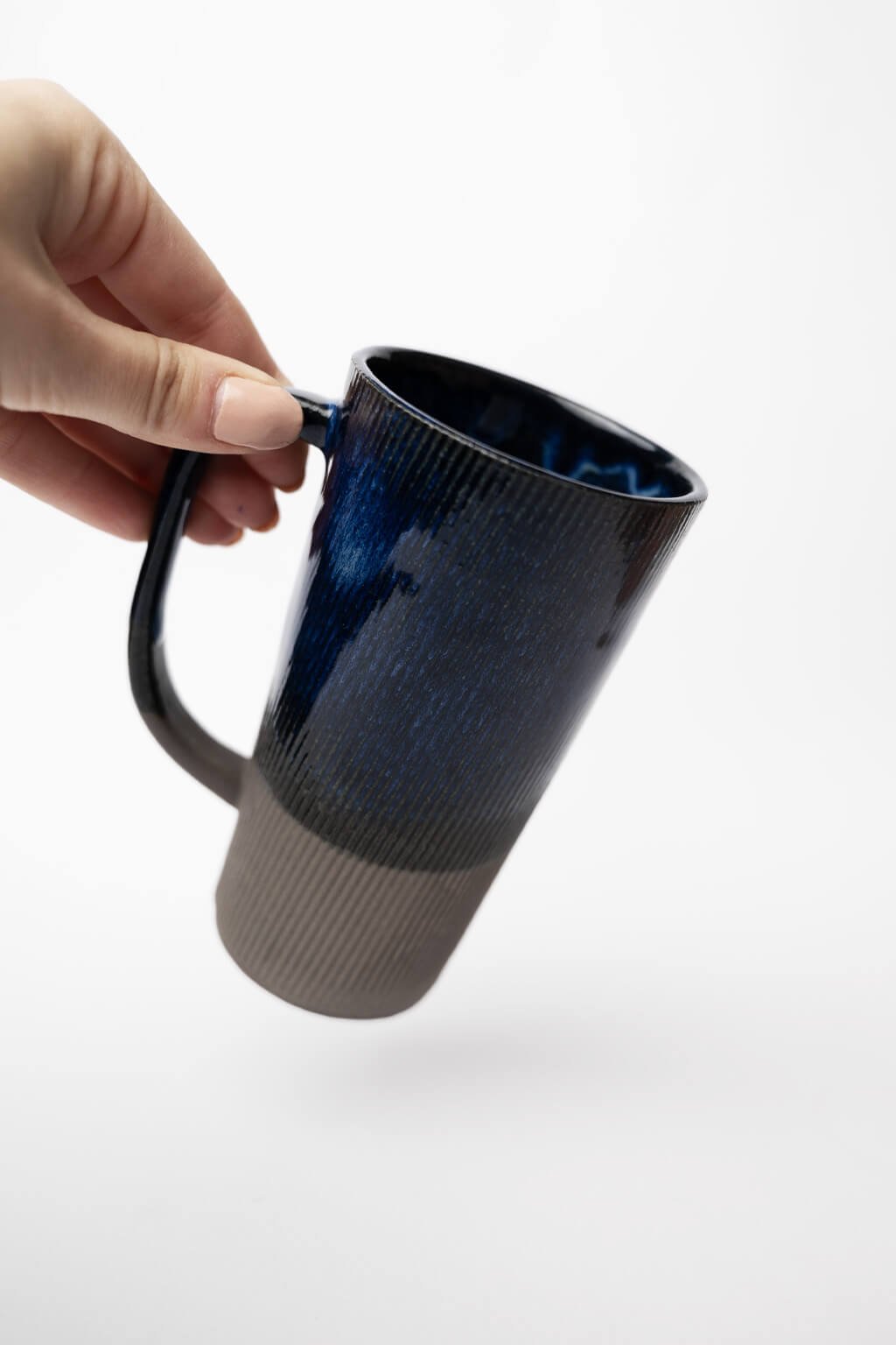 Keramický hrnček o objeme 300 ml s jemnou kombináciou matnej šedej a lesklej parížskej modrej glazúry je štýlovým doplnkom pre každodenné chvíle pohody.