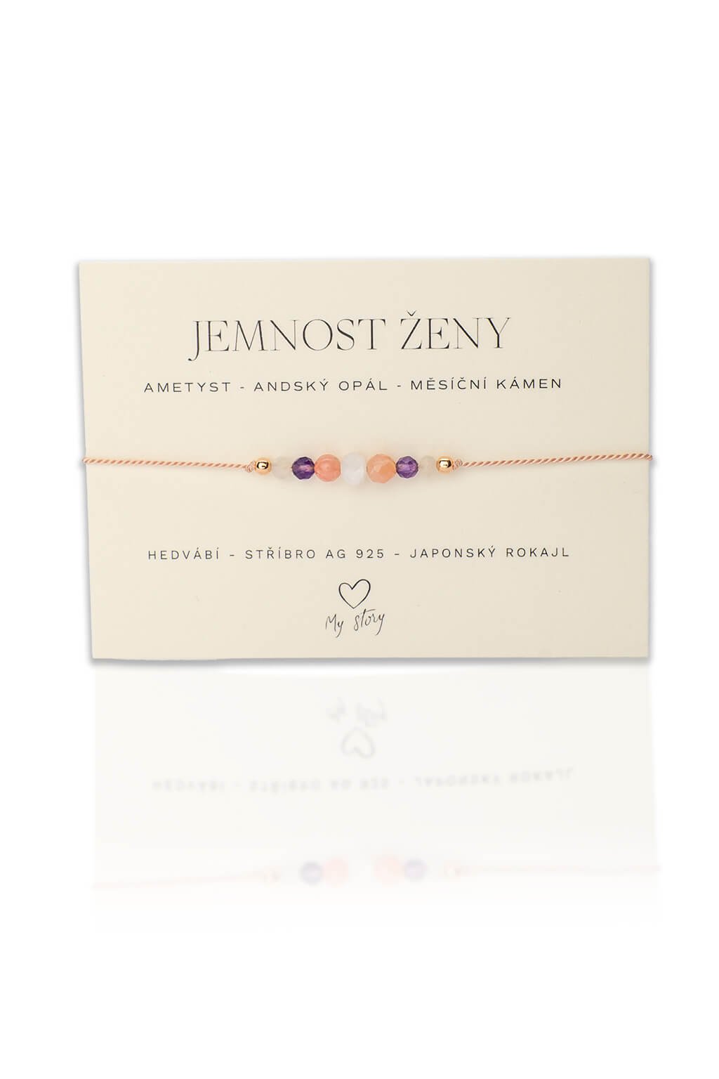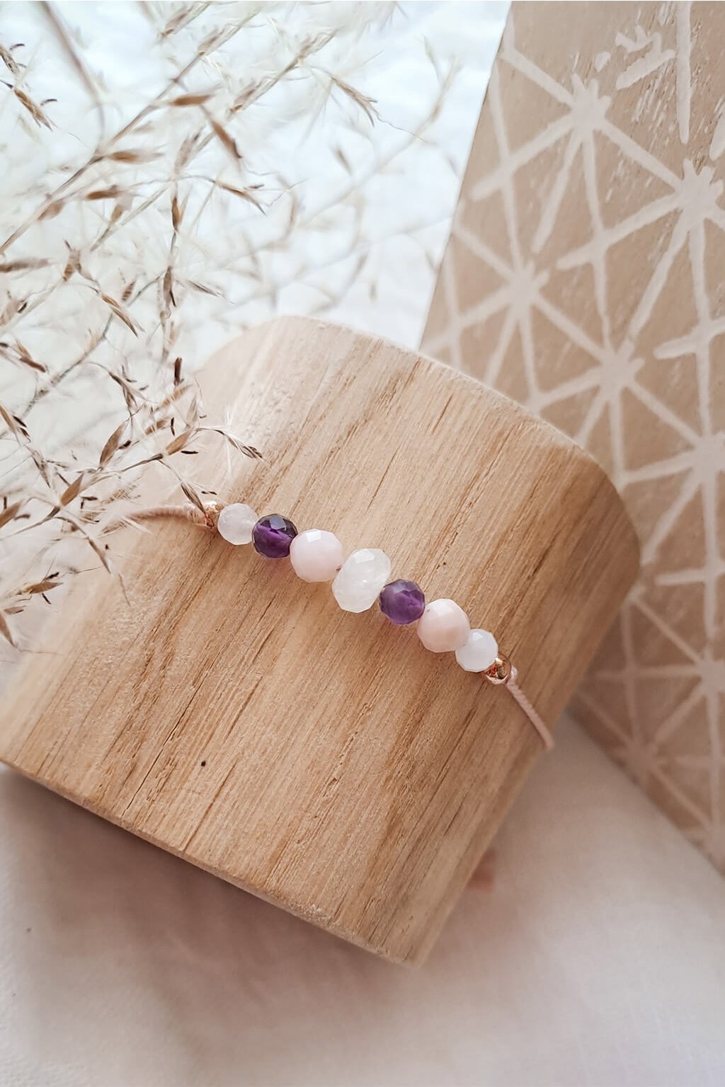 Ametyst v náramku pôsobí ako silný ochranný kameň, zatiaľ čo mesačný kameň podporuje ženské vlastnosti ako sú nesebecká láska a intuícia.