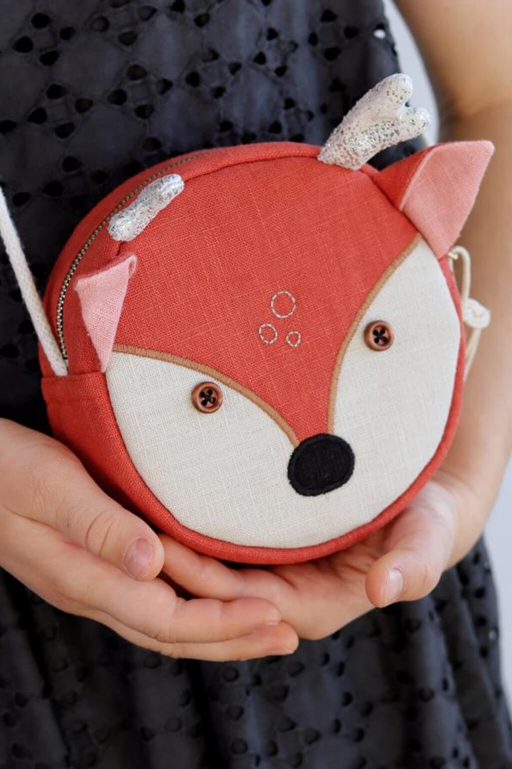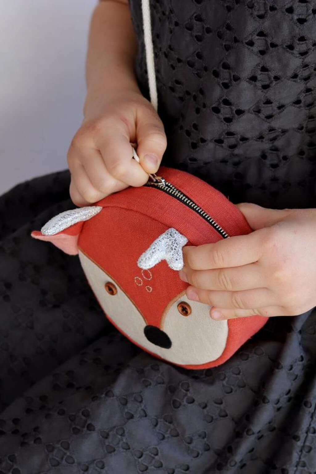 Ručne šitá okrúhla crossbody kabelka s motívom zvieratiek pre všetky hravé deti.
