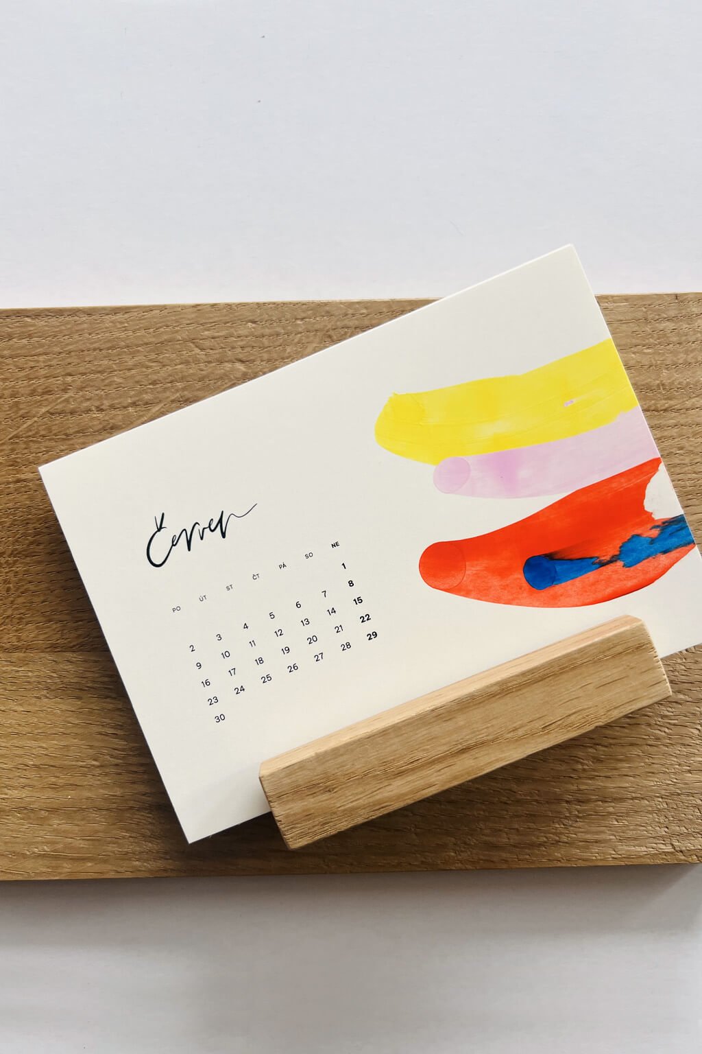Celý kalendár je zasadený v elegantnom dubovom stojane, ktorý potom môžete ďalej využívať napríklad na vystavenie pohľadnice, na vizitky a pod.