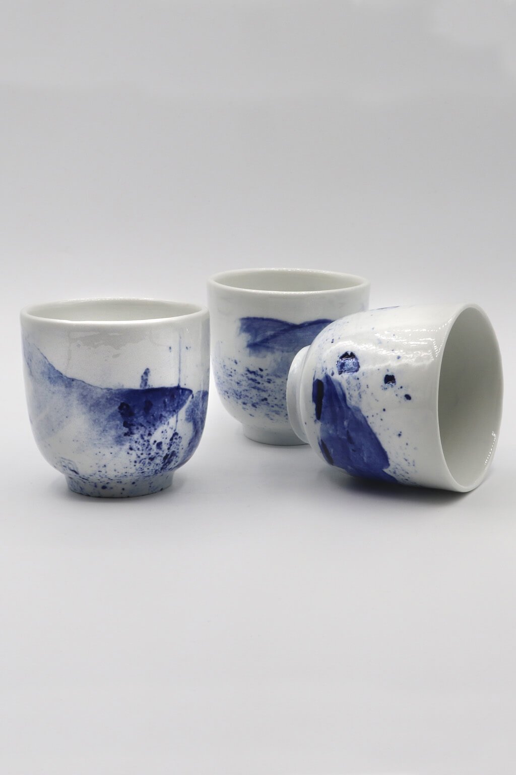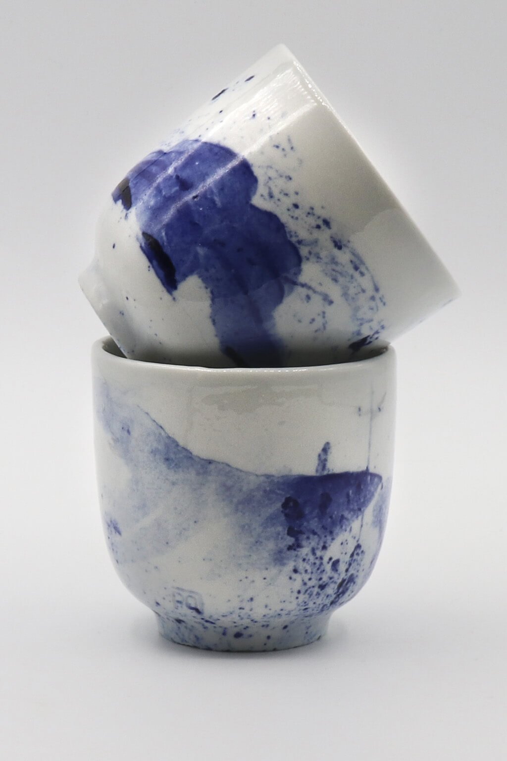Jemne štruktúrovaný kalíšok je zdobený kobaltom, pričom táto technológia pracuje s prvkom náhody, a preto je každý kus jedinečný a neopakovateľný.