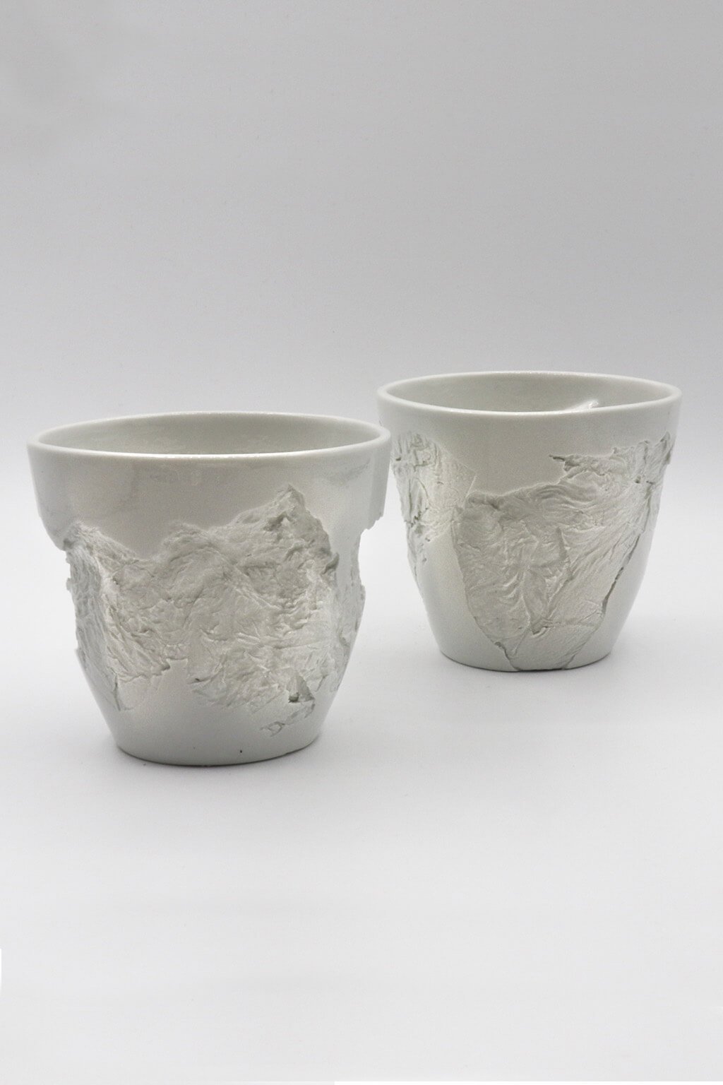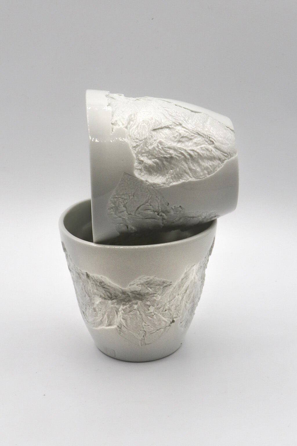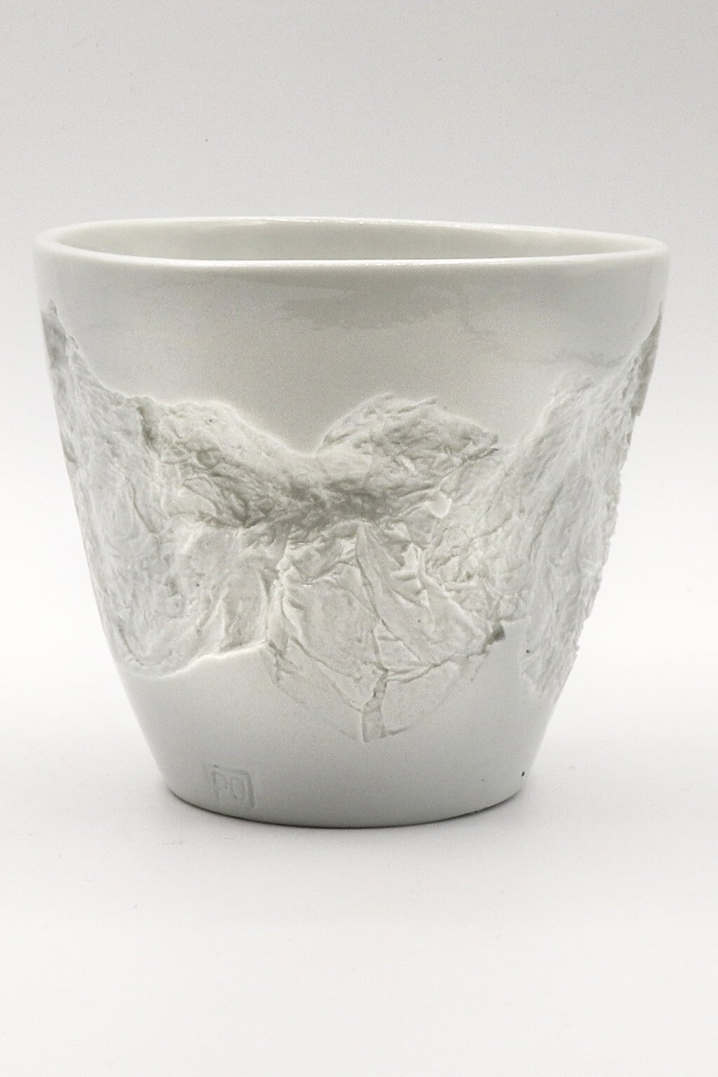 Mačkaný kalíšok s originálnym štruktúrovaným povrchom. Jednoduchý a predsa neopakovateľný originál na rannú kávu alebo čaj.