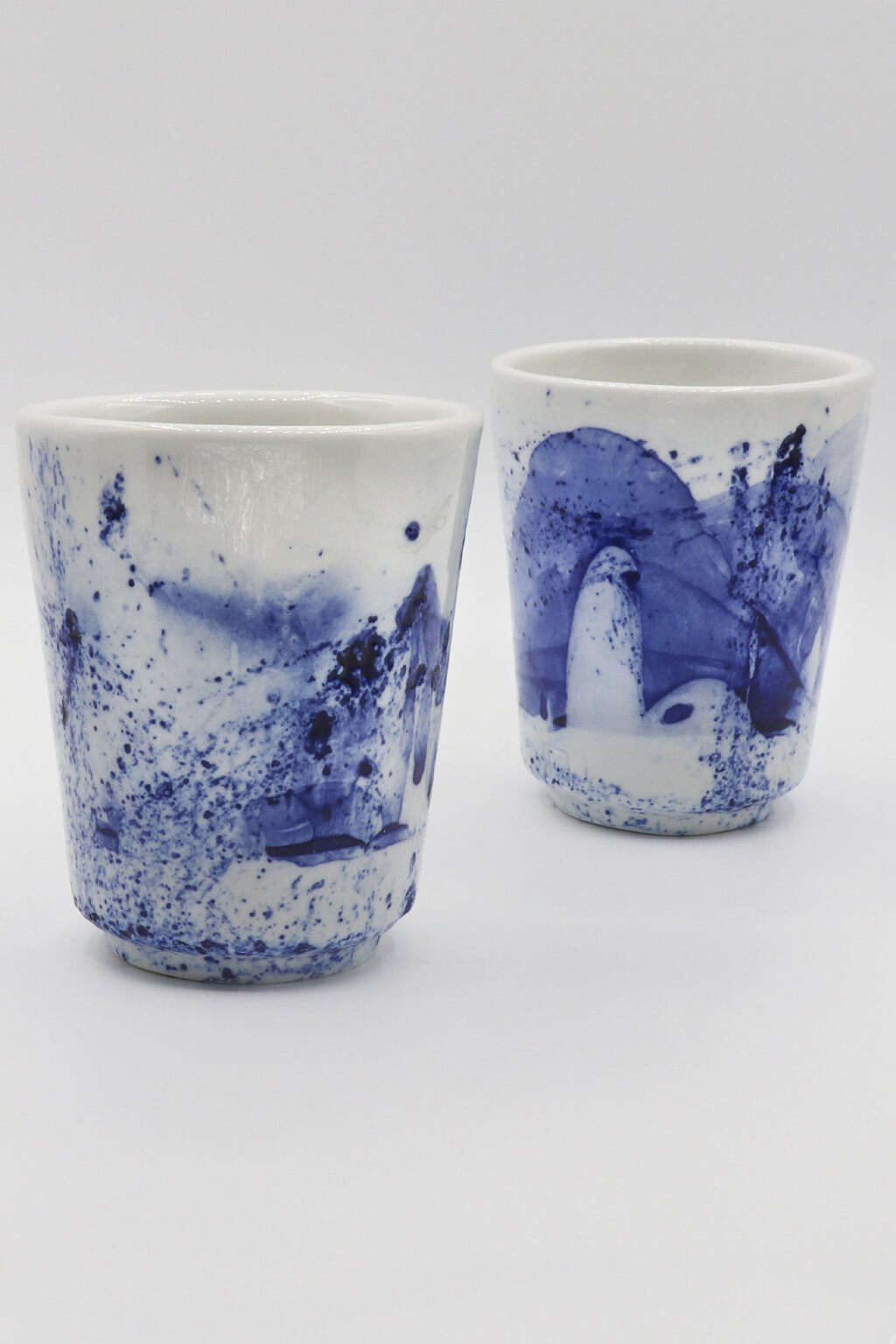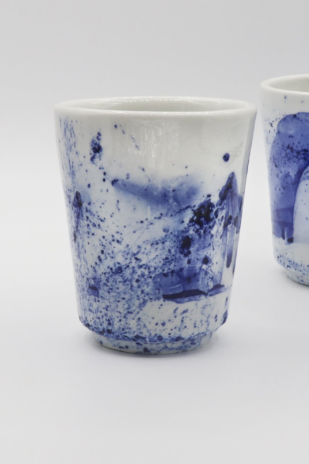 Jemne štruktúrovaný kalíšok je zdobený kobaltom, pričom táto technológia pracuje s prvkom náhody, a preto je každý kus jedinečný a neopakovateľný.