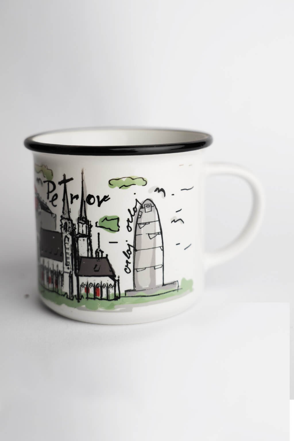 Čiernobiela ilustrácia najznámejších architektonických skvostov v Brne, ktoré už určite poznáte! Krásna dekorácia a zároveň praktický hrnček na kávičku. Skvelý darček pre milovníkov Brna.