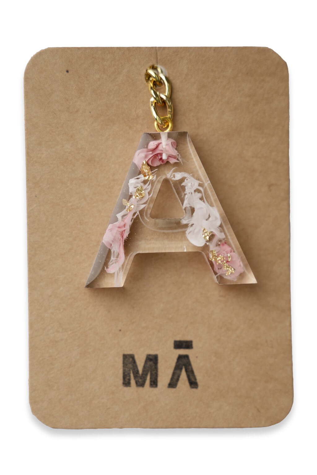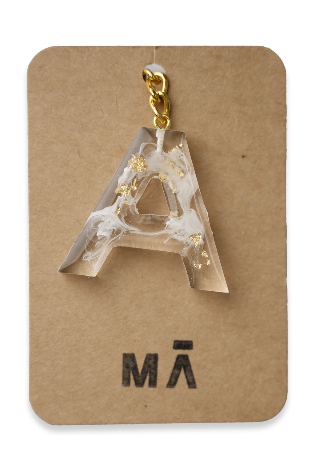 Elegantná kľúčenka s príveskom v tvare písmena, vyrobená z kvalitnej živice.