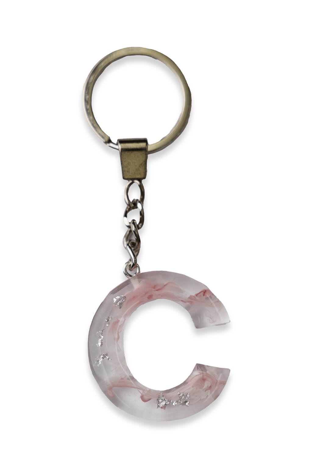 Štýlová kľúčenka s príveskom v tvare písmena, vyrobená z kvalitnej živice.