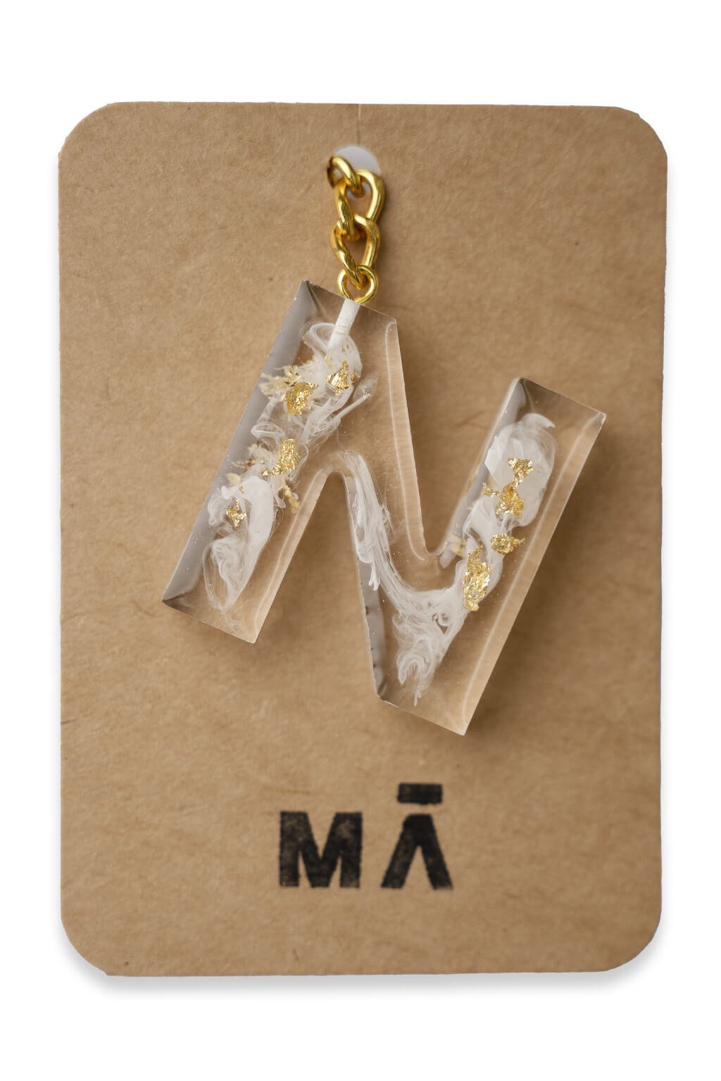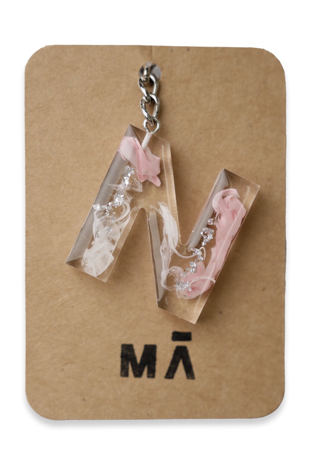 Elegantná kľúčenka s príveskom v tvare písmena, vyrobená z kvalitnej živice.