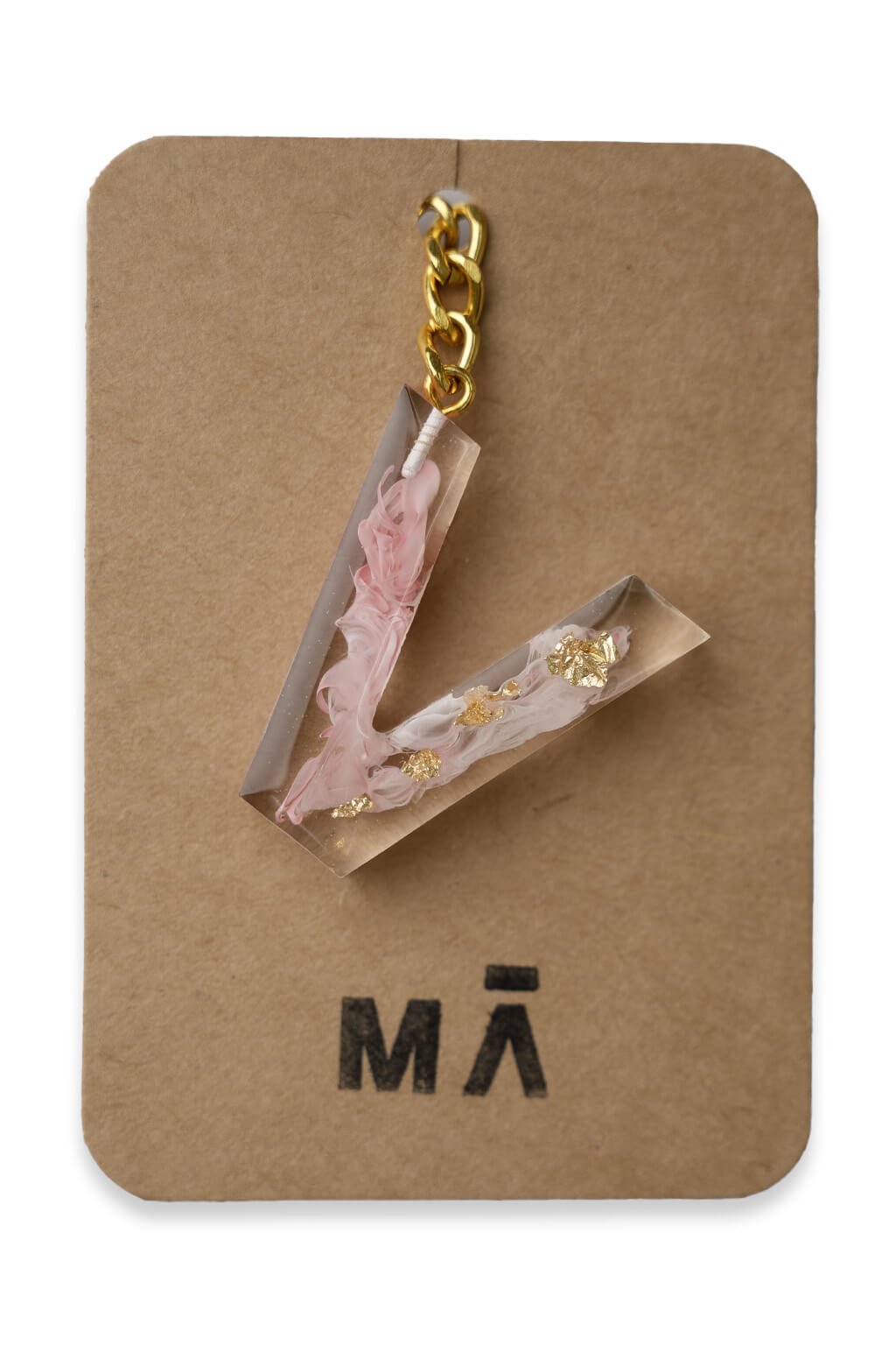 Elegantná kľúčenka s príveskom v tvare písmena, vyrobená z kvalitnej živice.