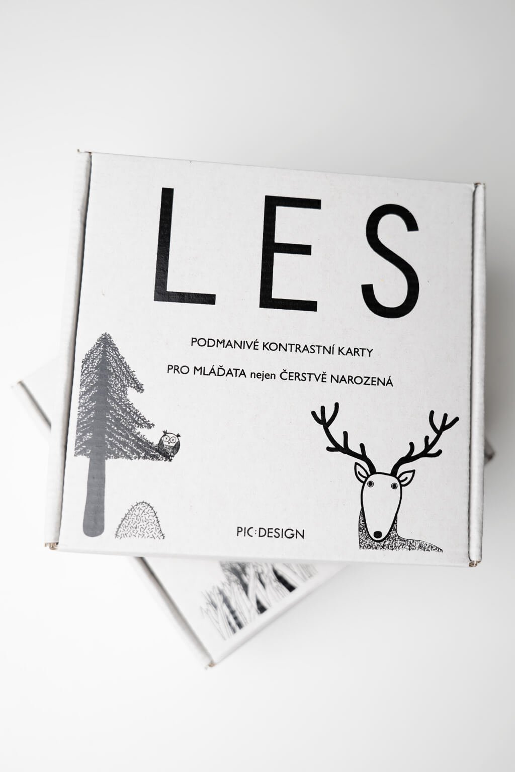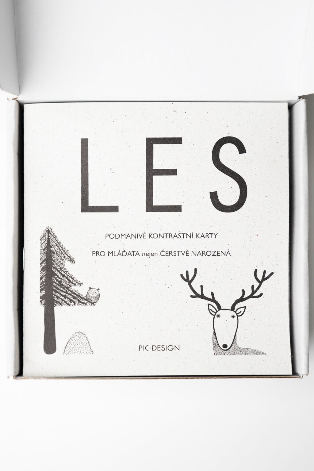 Sada 15 autorských obojstranných kariet s jednoduchými čiernobielymi lesnými motívmi od značky PIC:DESIGN.