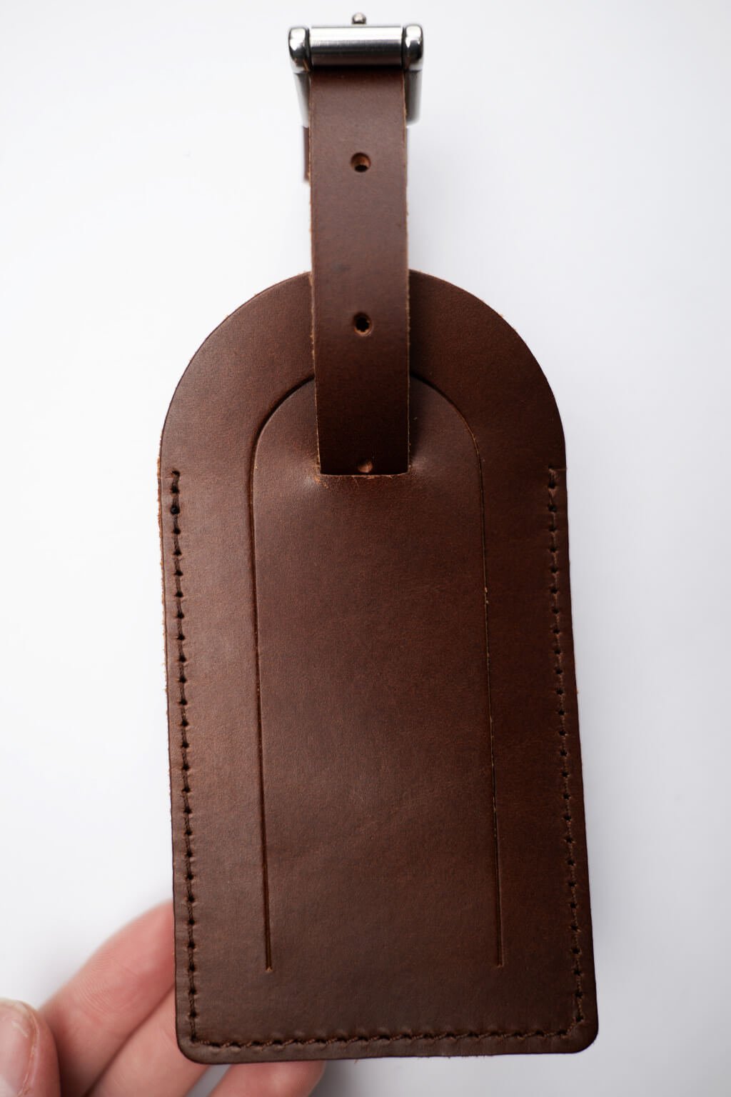 Dizajnová elegantná kožená visačka na batožinu s jednou rafinovanosťou navyše. Kartička s menom je bezpečne schovaná vo vnútri visačky a zostane tak skrytá pred náhodnými zvedavými pohľadmi. :)