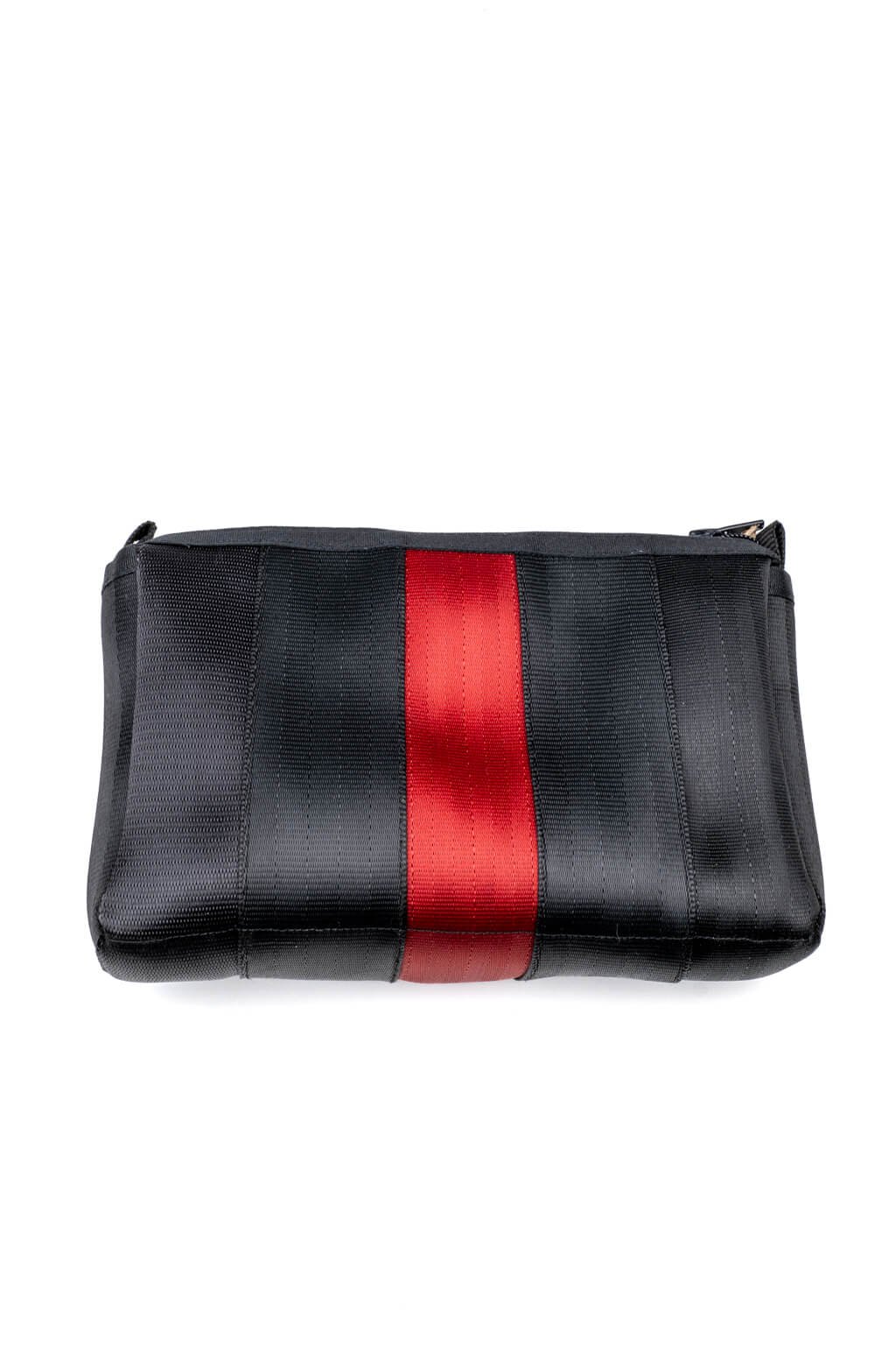 Navrhnutá s dôrazom na praktickosť a štýlom, je táto taštička ideálna na uloženie vašej kozmetiky, hygienických potrieb alebo drobných predmetov. Vyrobená z odolných recyklovaných autopásov, je k dispozícii v niekoľkých farebných variantoch - klasická čierna, dynamický červený pruh, elegantný modrý pruh a sofistikovaný tmavozelený pruh - čo vám umožňuje vybrať si taštičku, ktorá najlepšie zodpovedá vášmu štýlu alebo nálade.