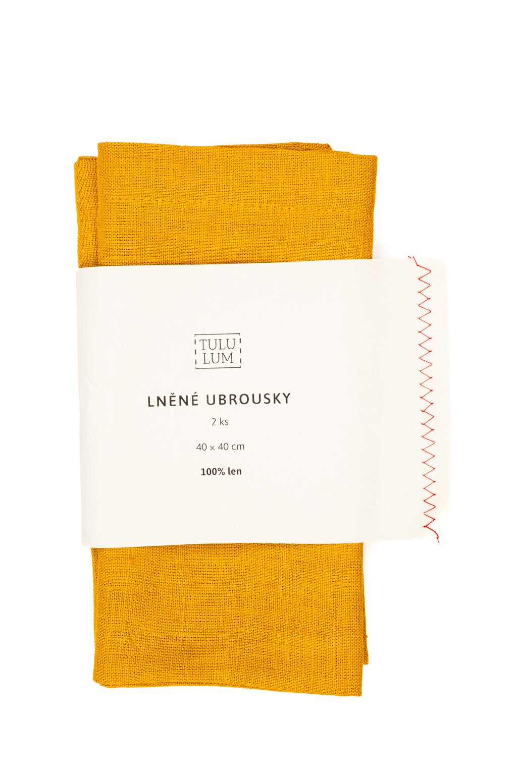 Obrúsky od značky Tululum sú vyrábané zo 100% husto tkaného ľanu v žltom odtieni. Rozmery 40 x 40 cm, sada 2 ks Navrhnuté a ušité v Českej republike.