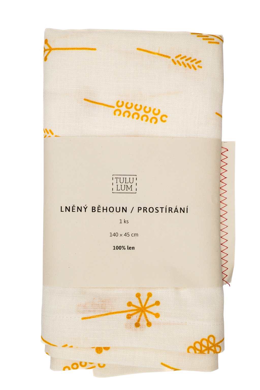 Behúň od značky Tululum je vyrobený zo 100% mäkčeného ľanu bielej farby s autorskou potlačou Bloom. Rozmery: 140 x 45 cm Navrhnuté a ušité v Českej republike