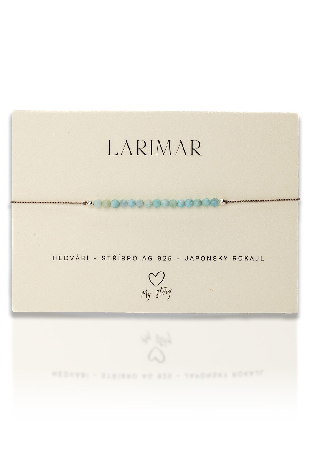 - Materiál: Fazetované korálky Larimaru, hodvábna šnúrka, strieborné korálky Ag925
