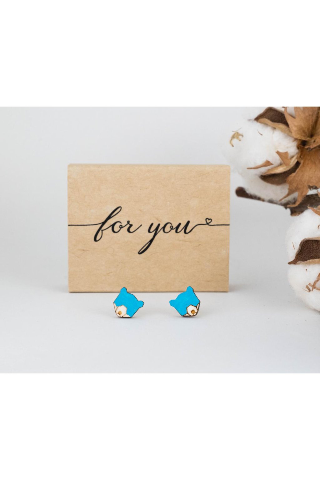 Jemné drevené náušničky od značky Alizi Design, ktoré kombinujú hravé tvary s jednoduchým dizajnom. Tieto náušničky sú ručne maľované akrylovými farbami a doplnené puzetami z chirurgickej ocele, čo zaisťuje ich kvalitu.