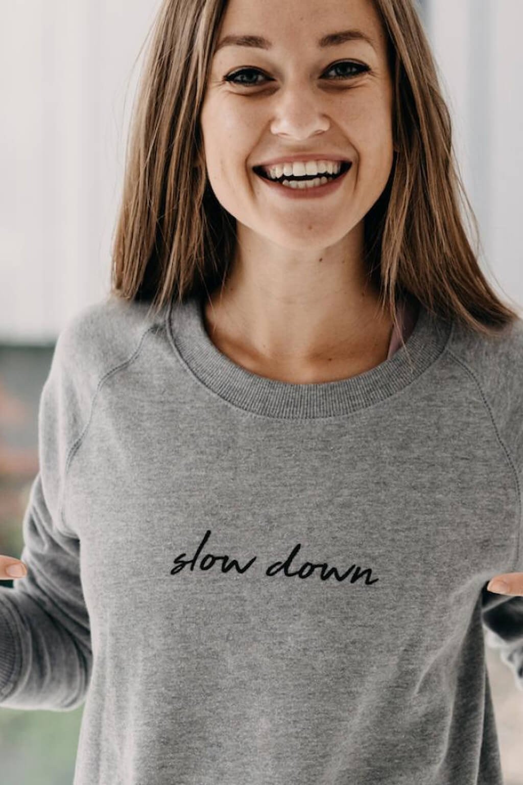 Máme pre teba mikinu s decentnou potlačou Slow down na kapucni alebo minimalistickú verziu úplne bez potlače.