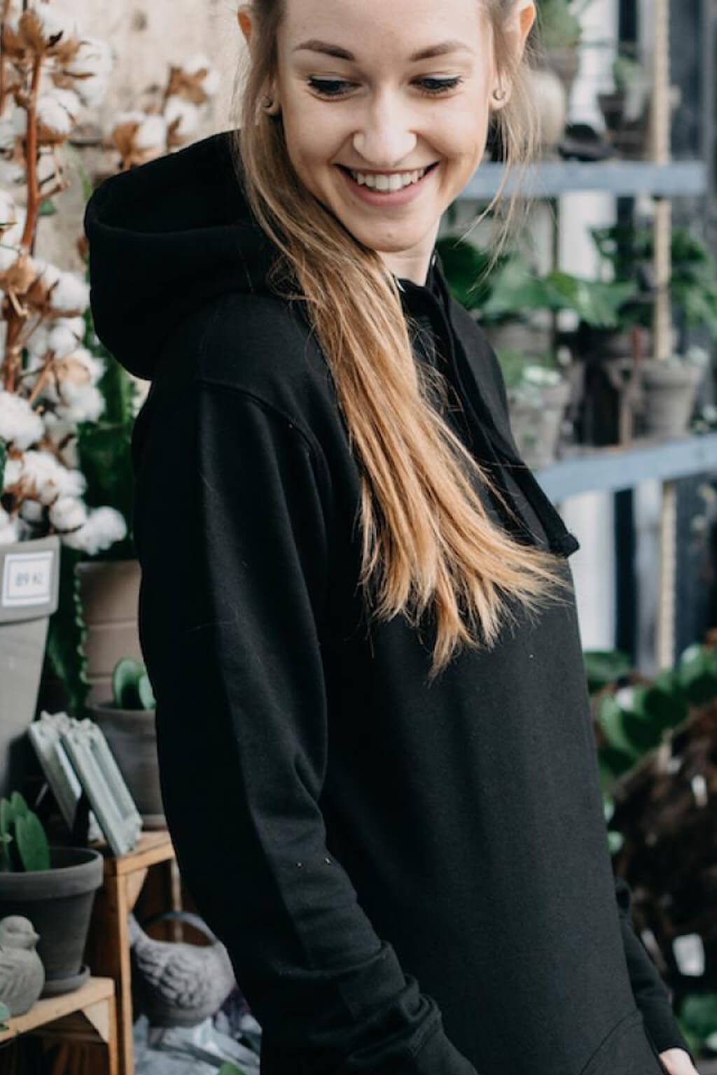 Dámska mikina/mikinošaty s kapucňou. Prepojené klokanie vrecko.