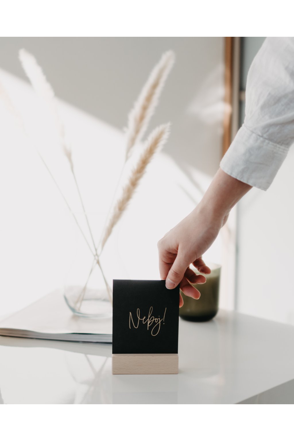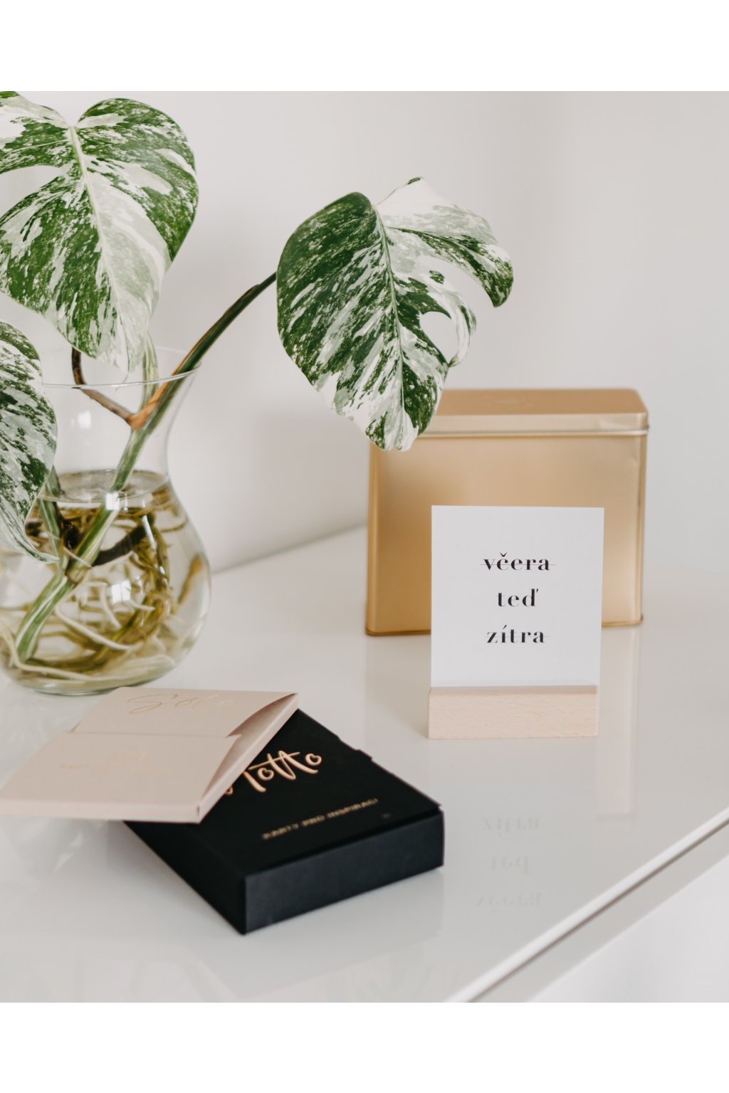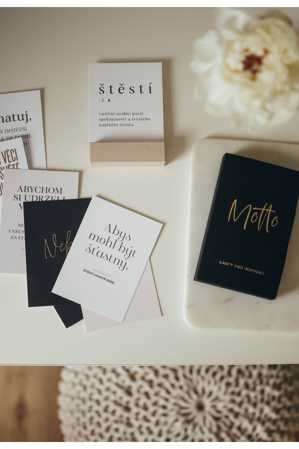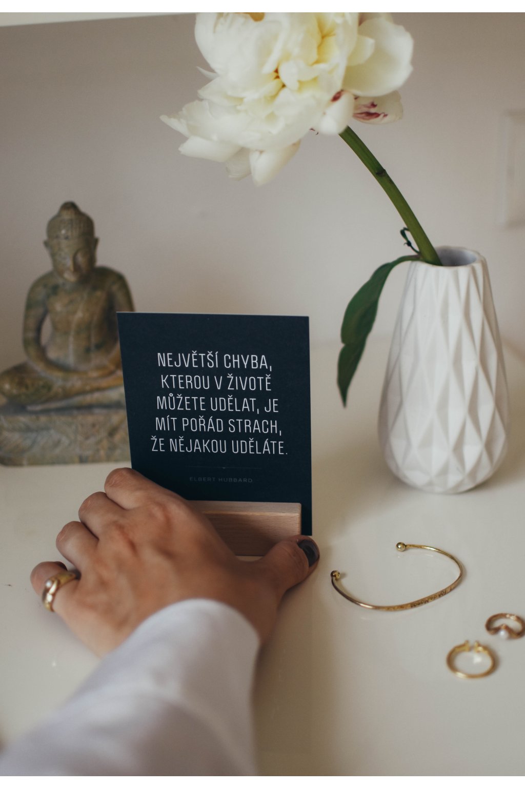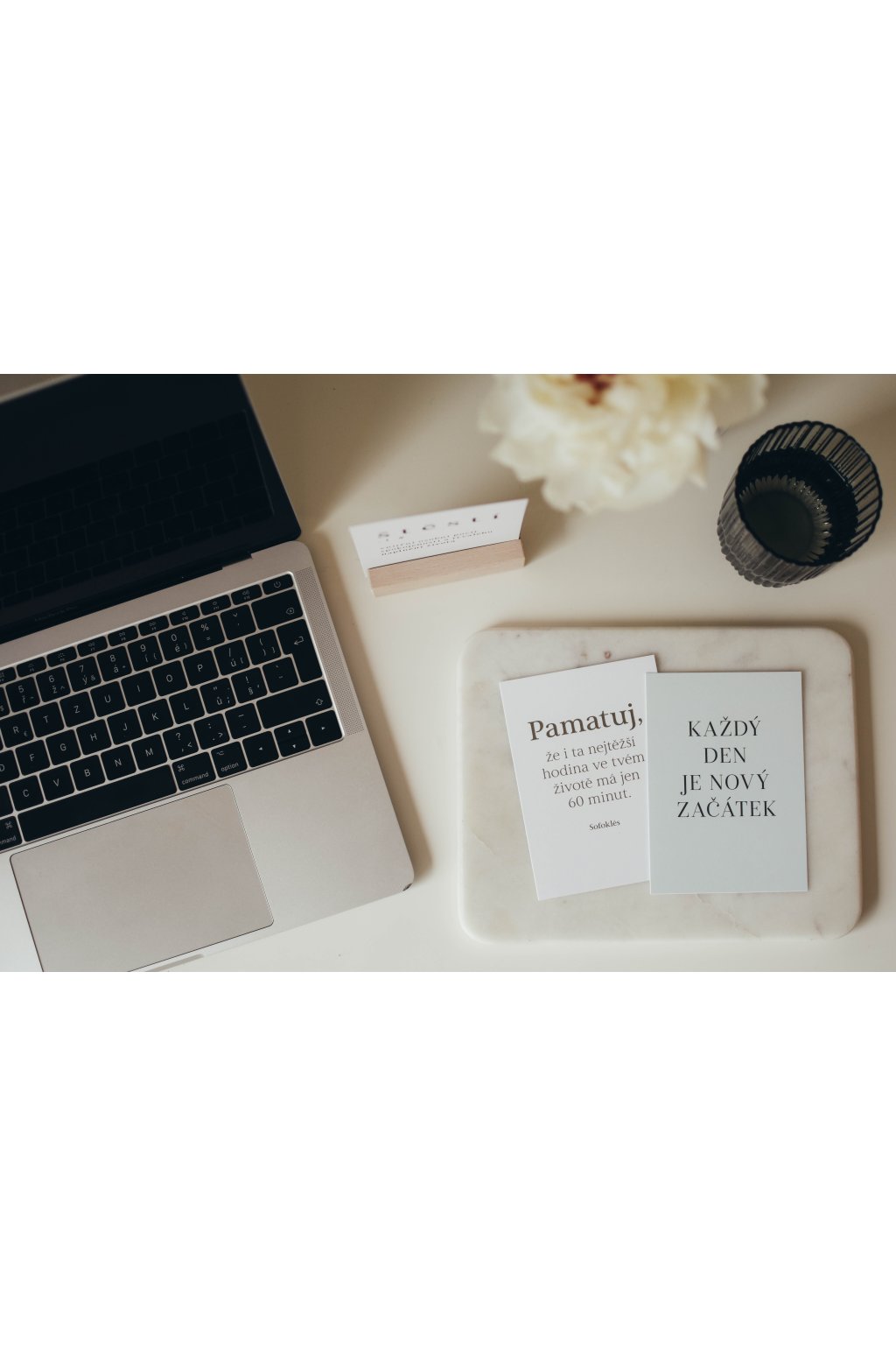 Sadu 17 motivačných kariet zdobí čistý, typografický dizajn a jednoduchosť, ktorú v Bloque. milujú. S elegantným stojanom v drevenom prevedení.