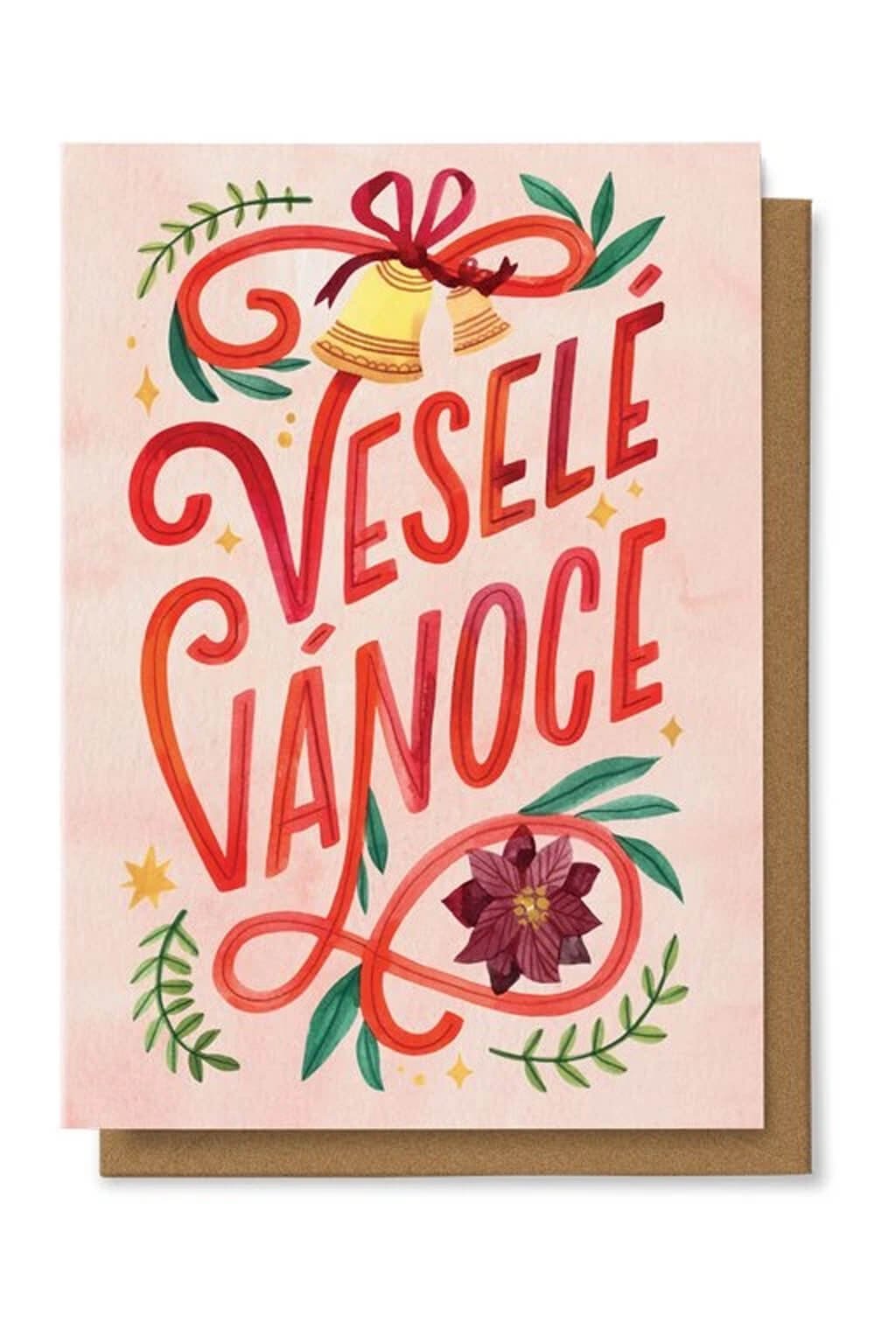 Veselé Vianoce! Pohľadnica v elegantnej púdrovej farbe s nápisom, ktorá poteší niekoho blízkeho.